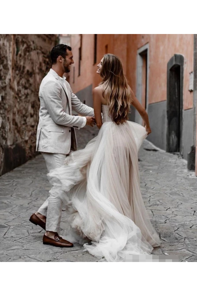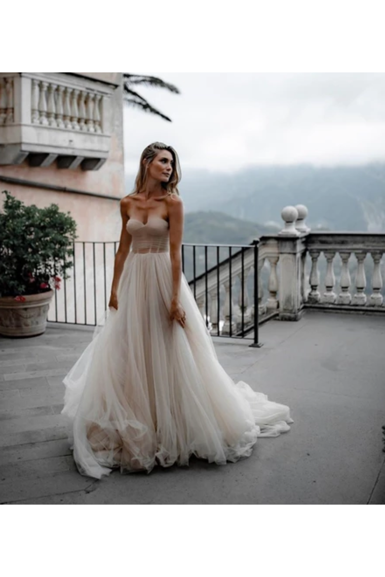 Pleated Tulle Bridal Dresses SweetHeart Neckline Minimalist Wedding Dresses