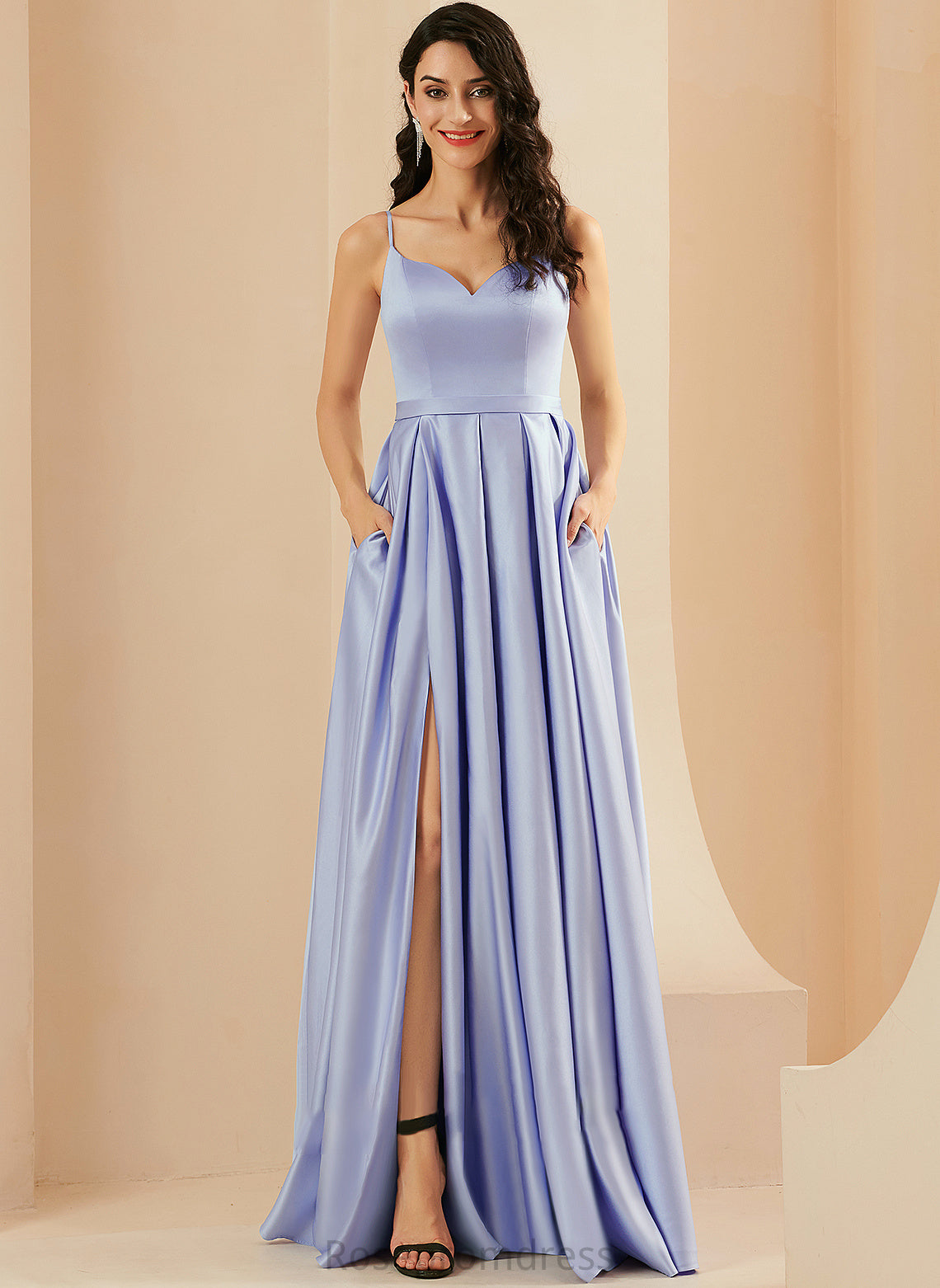 Pockets Satin Front Ball-Gown/Princess Sweetheart Prom Dresses With Floor-Length Alina Split