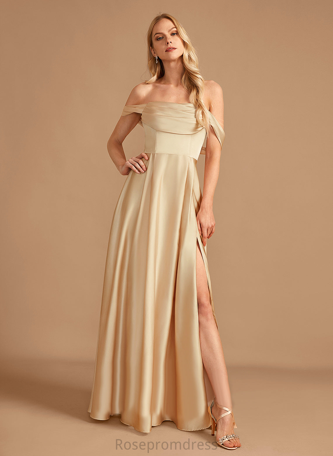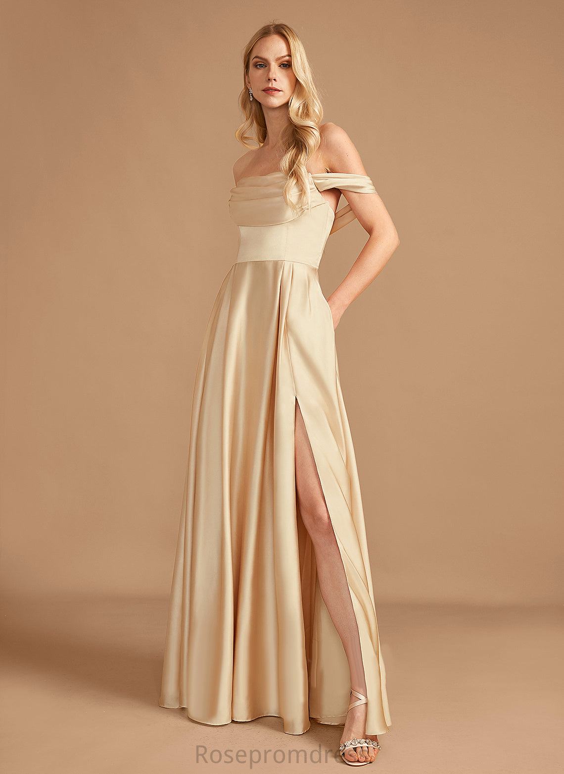 Pockets Silhouette Fabric A-Line Length Embellishment Floor-Length SplitFront Off-the-Shoulder Neckline Danika Bridesmaid Dresses
