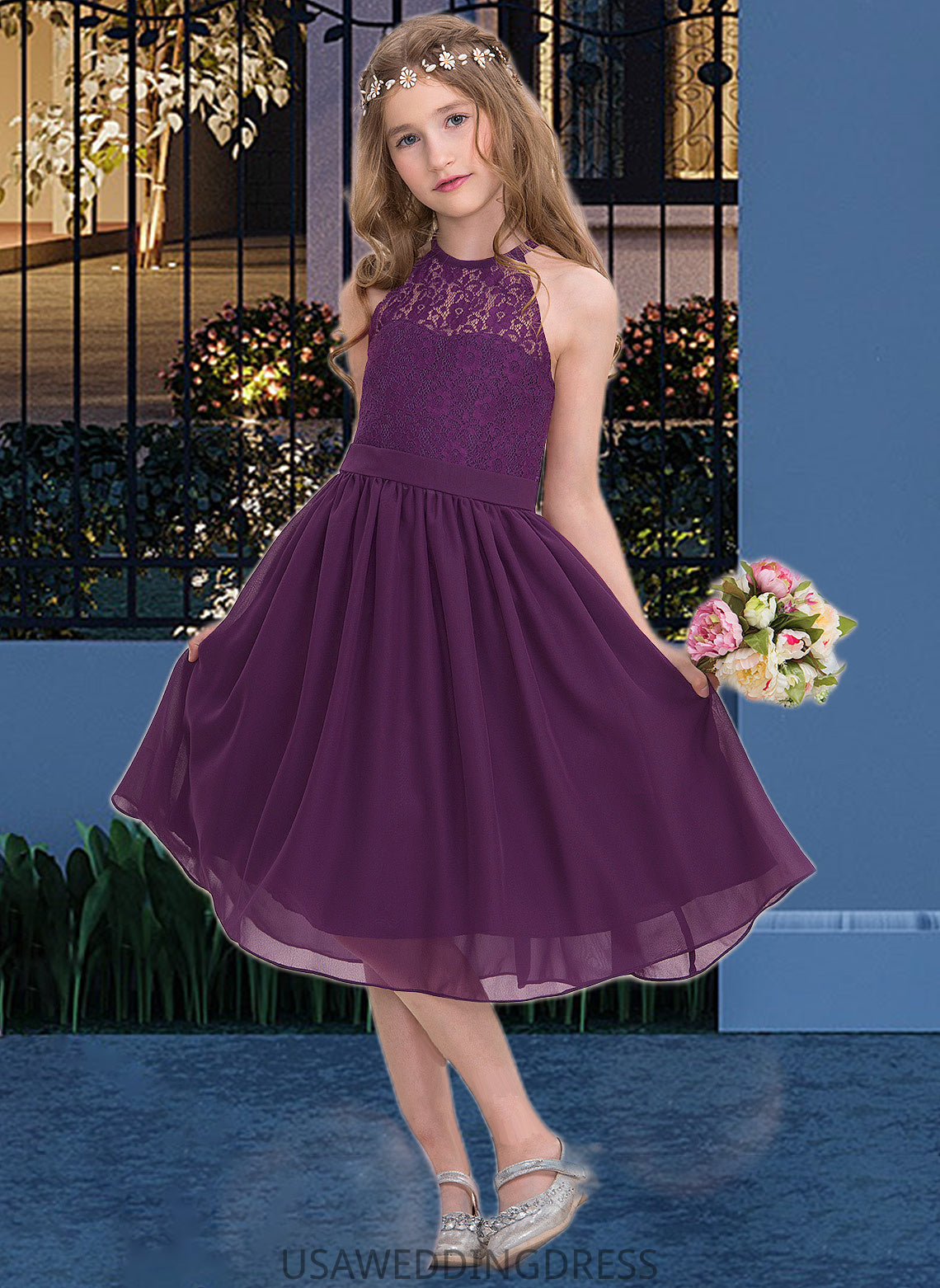 Polly A-Line Scoop Neck Knee-Length Chiffon Junior Bridesmaid Dress DSP0013379