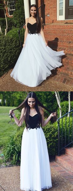 Pretty A-line Black and White Sweetheart Neck Long prom Dress RS421