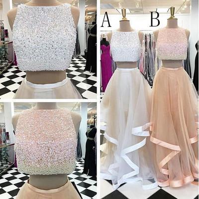 Pretty Two Pieces Beading Tulle Prom Dresses Beads Prom Gowns Cheap Prom Dress RS545