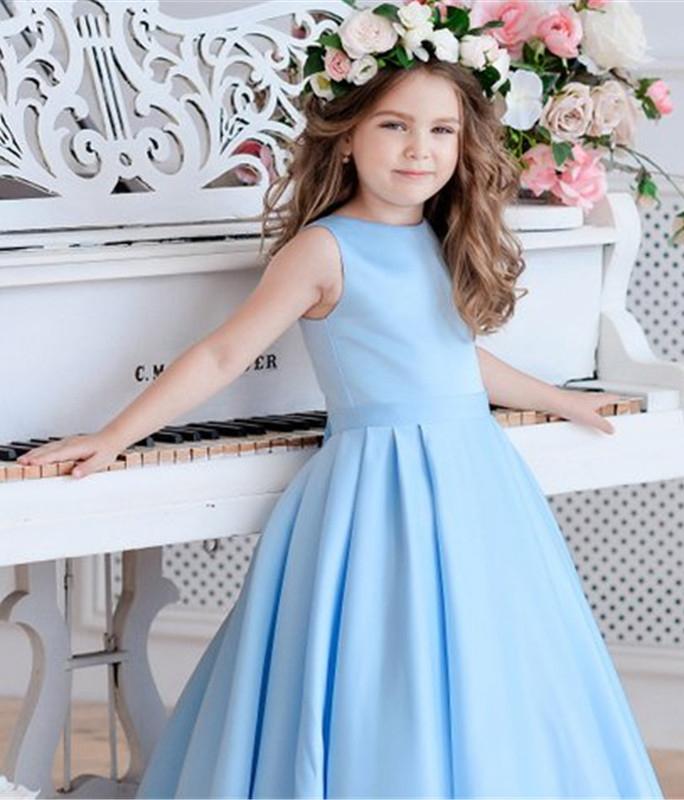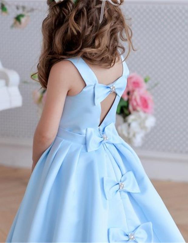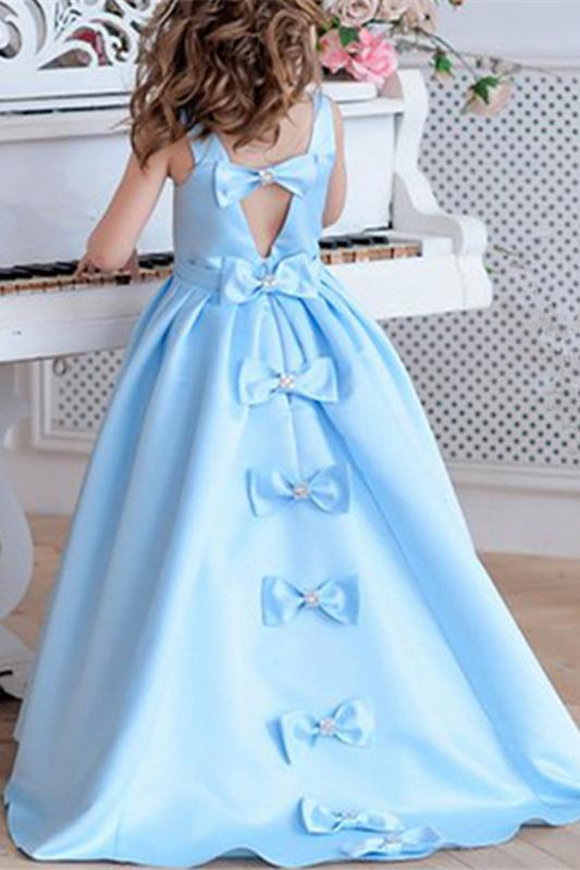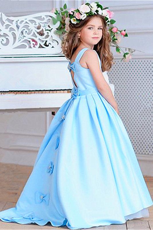 Princess A Line Sky Blue Satin Flower Girl Dresses with Bowknot, Baby Dresses SRS15586