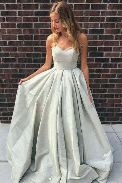 Princess A Line Strapless Sweetheart Lace up Satin Sleeveless Long Prom Dresses RS901