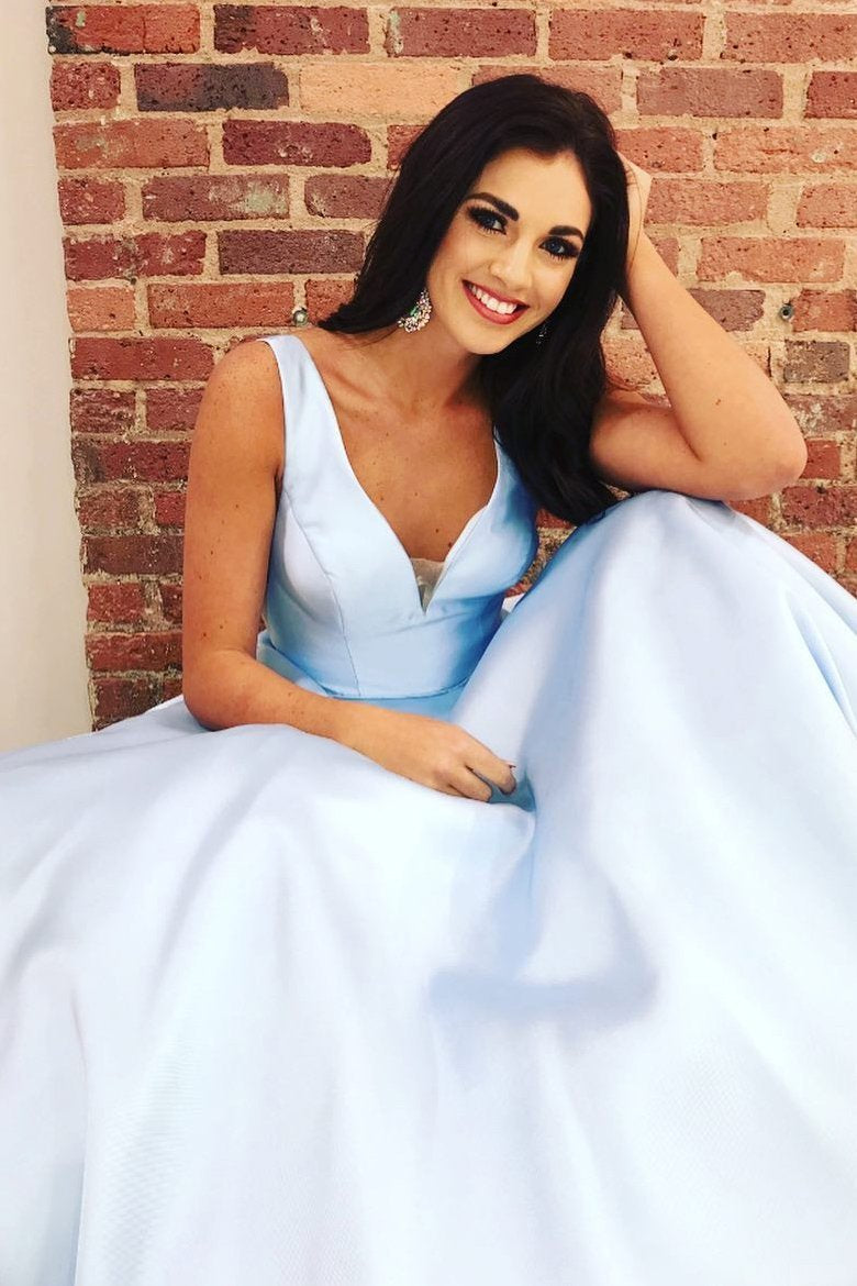 Princess A Line Deep V Neck Yellow Long Satin Backless Evening Dresses Prom Dresses RS962