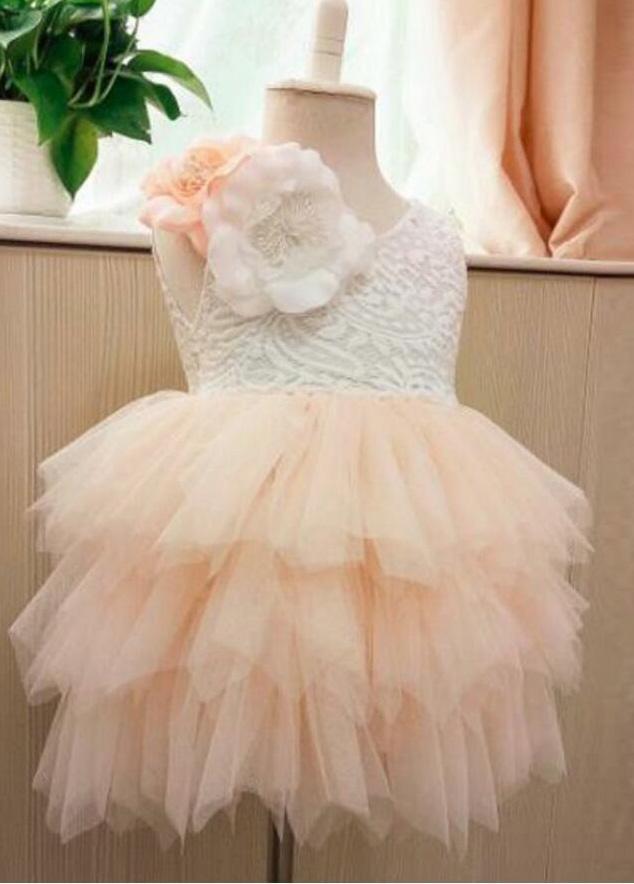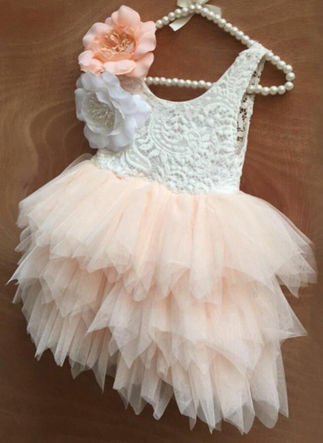 Princess Cute Pink Lace Tulle Flower Girl Dresses Layered Open Back Lovely Tutu Dresses RS776