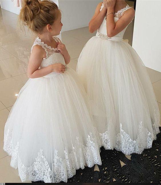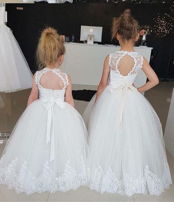 Princess Ivory Flower Girl Dresses with Lace Appliques, Cute Little Girl Dress SRS15590