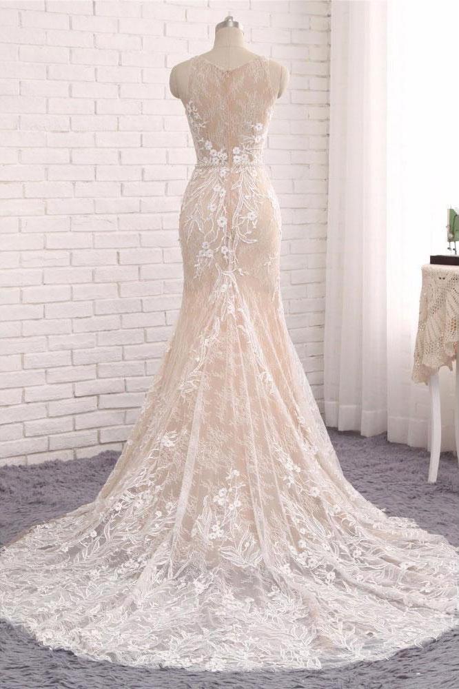 Princess Mermaid Lace Appliques Scoop Straps Ivory Wedding Dresses Bridal Dresses W1013