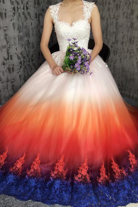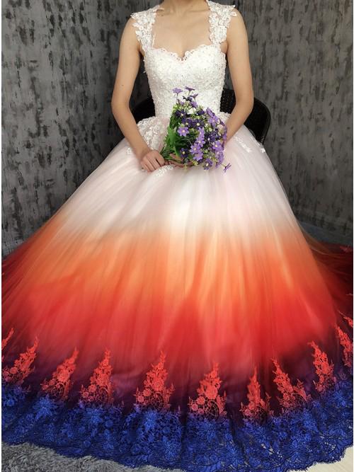 Princess Sweetheart Lace Appliques Ombre Tulle Long Prom Dresses Wedding Dresses SRS15309