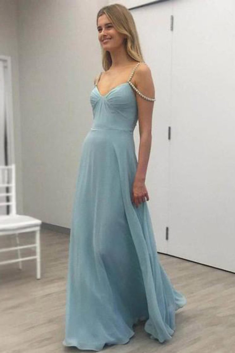Prom Dress A Line Sweetheart Chiffon Floor Length Straps