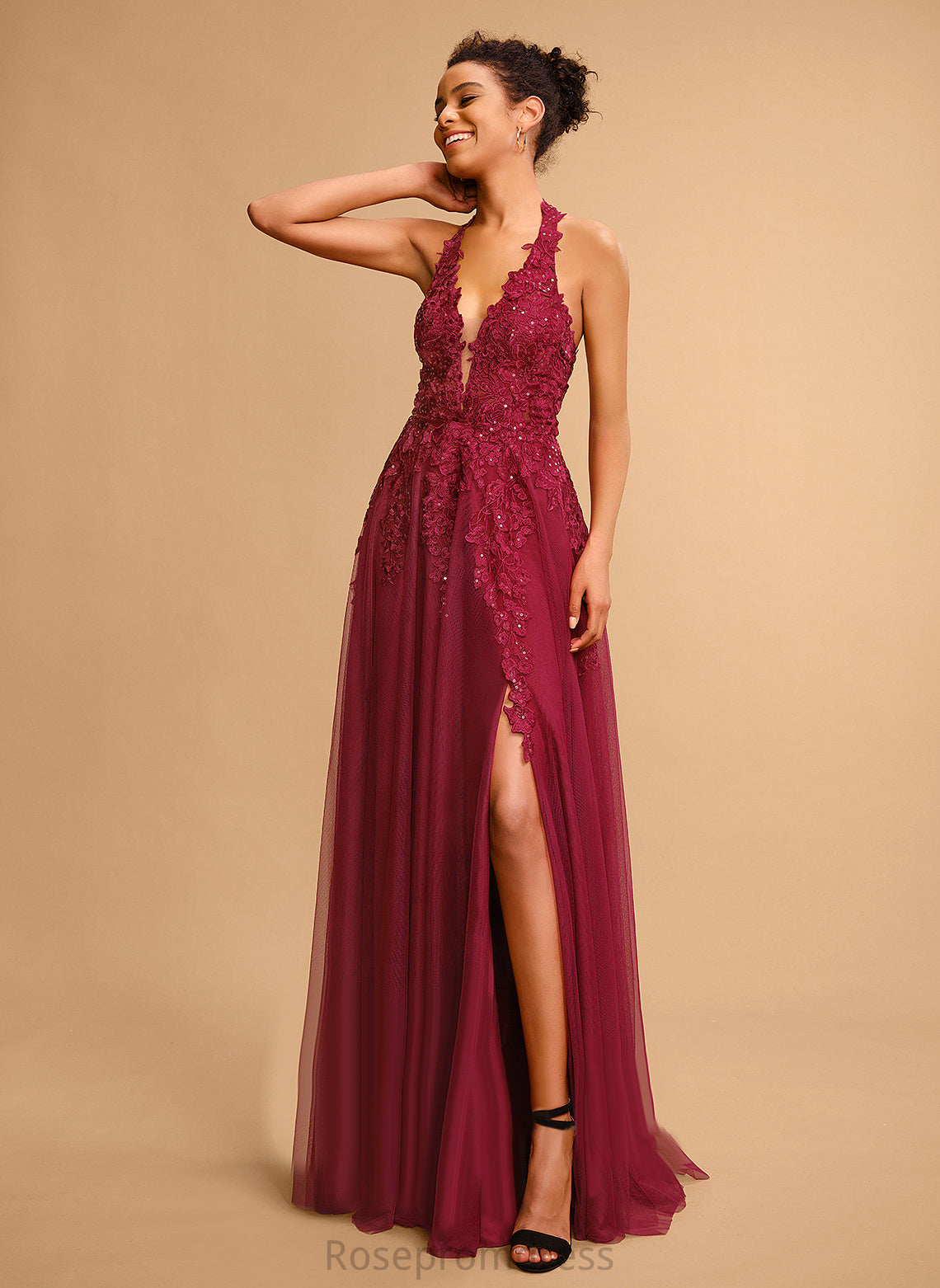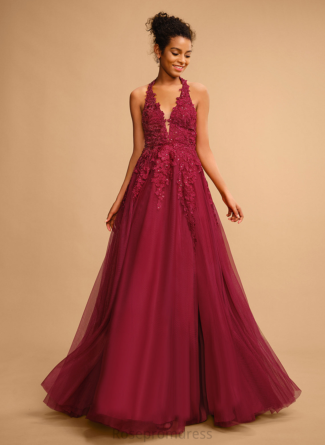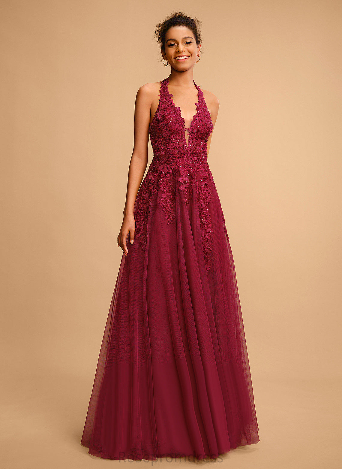 Prom Dresses Ball-Gown/Princess Tulle Rosalind Floor-Length Sequins Lace With Halter