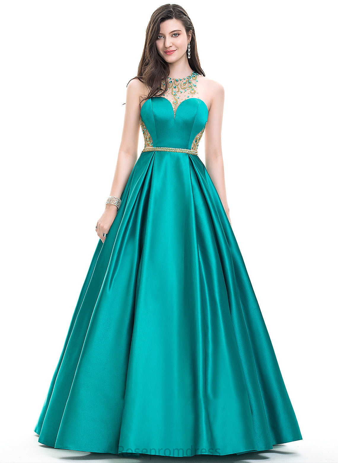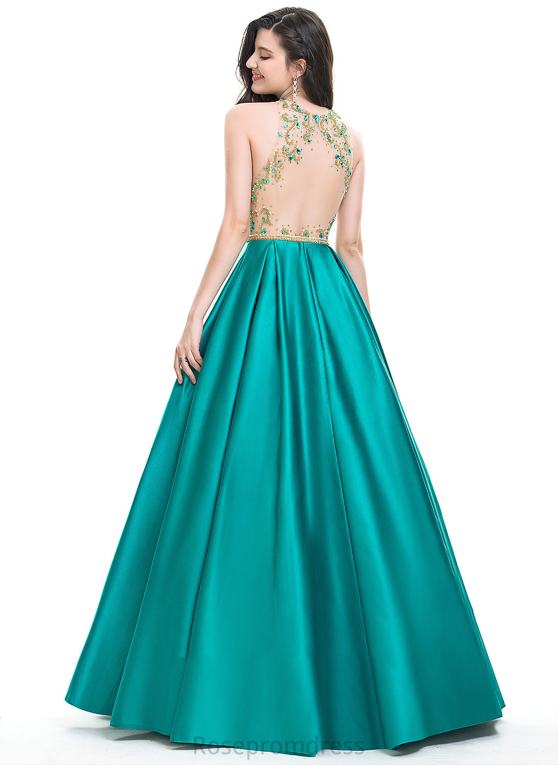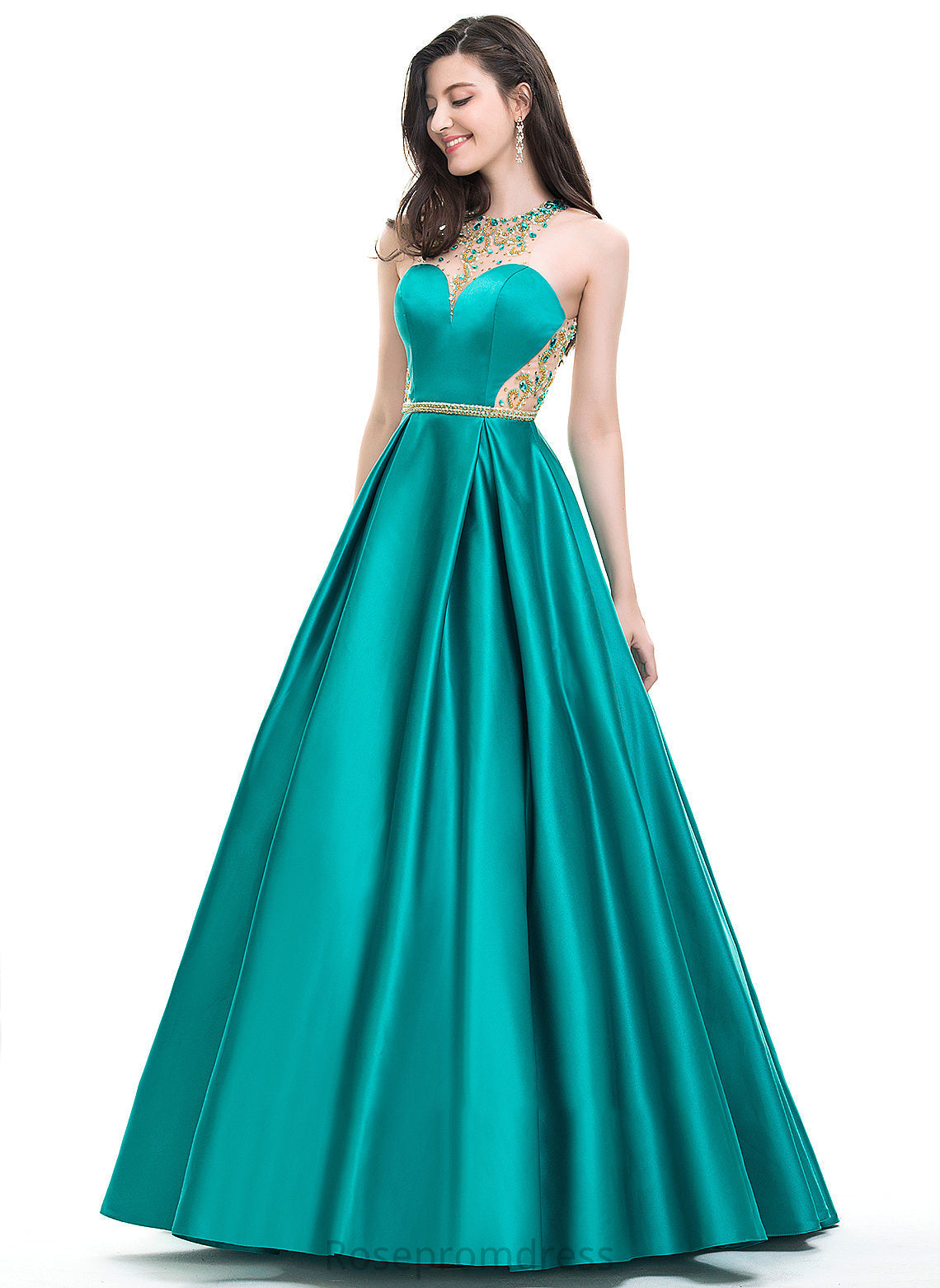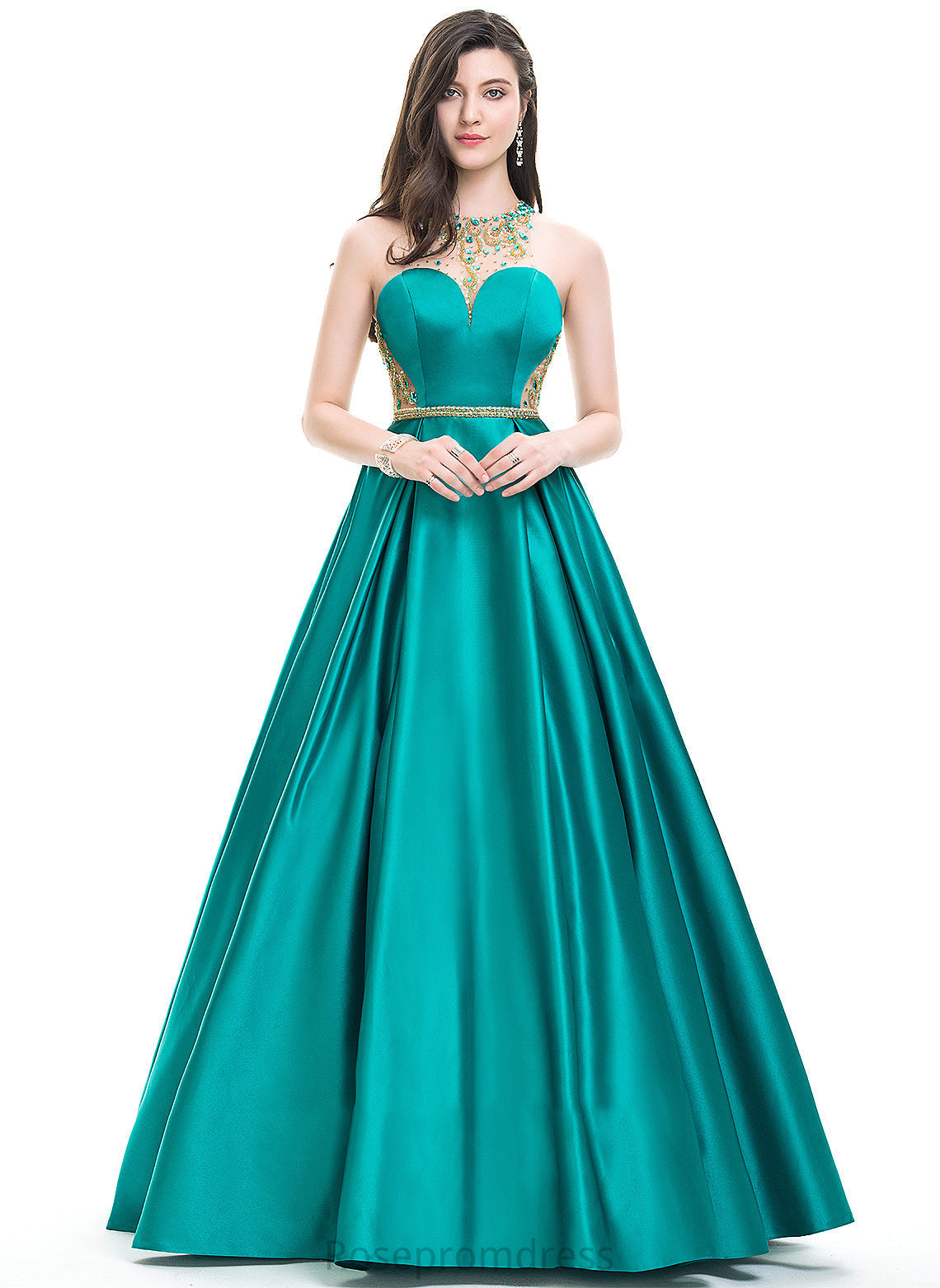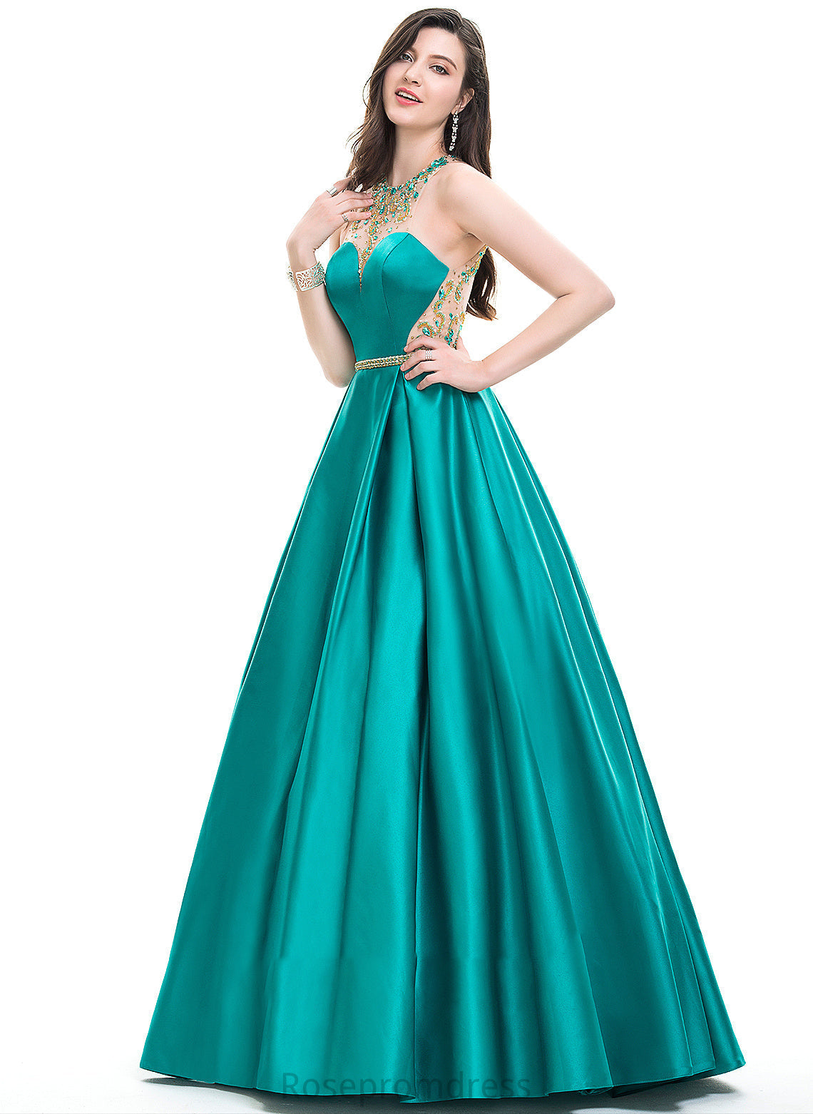 Prom Dresses Elisabeth Ball-Gown/Princess Beading Scoop Satin Sequins With Floor-Length Neck