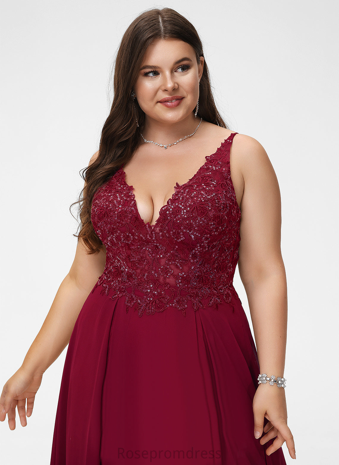 Prom Dresses Leila A-Line Chiffon Floor-Length Sequins V-neck With