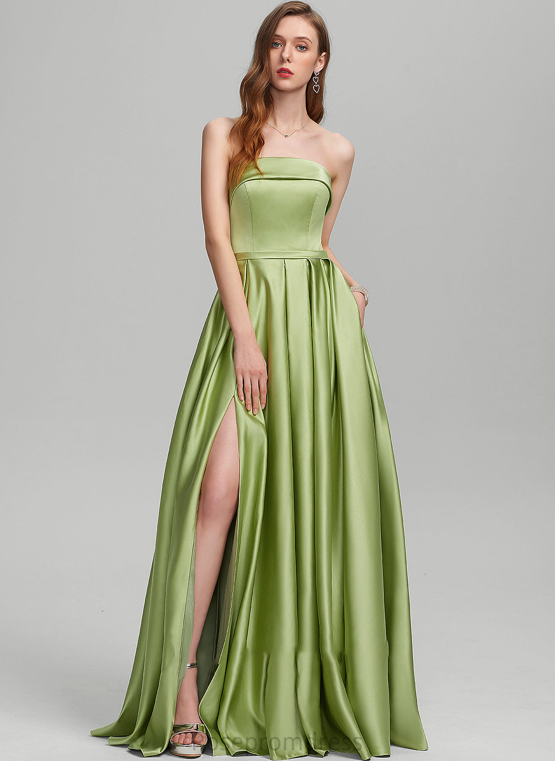 Prom Dresses Lilliana Split Strapless Satin Ball-Gown/Princess Pockets Front With Floor-Length