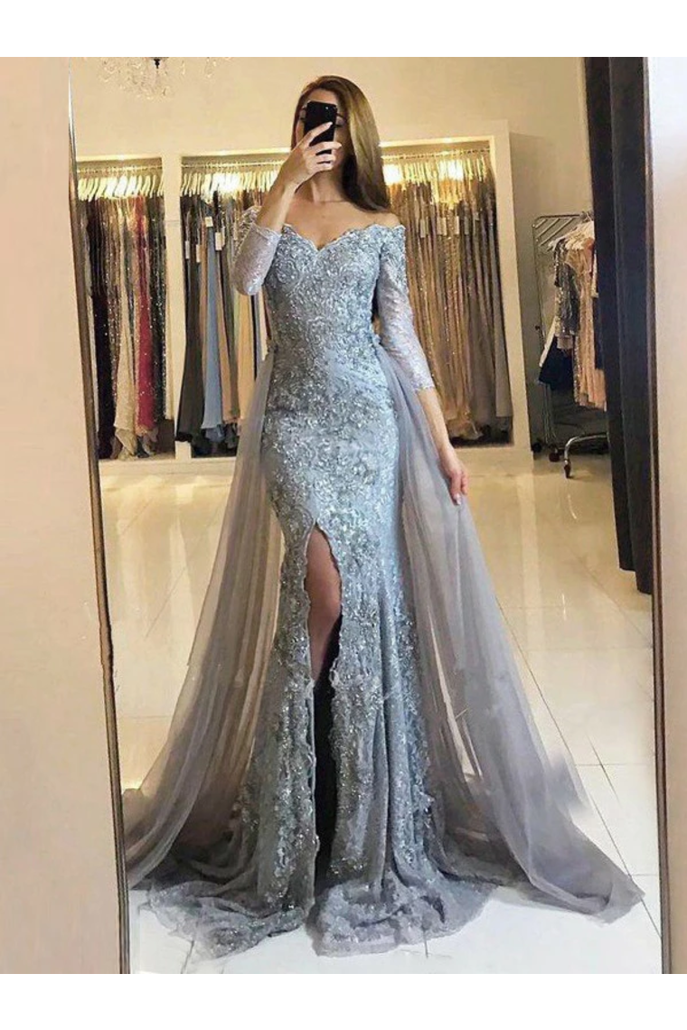 Prom Dresses Mermaid/Trumpet Satin With Applique Sweep Train Detachable Train