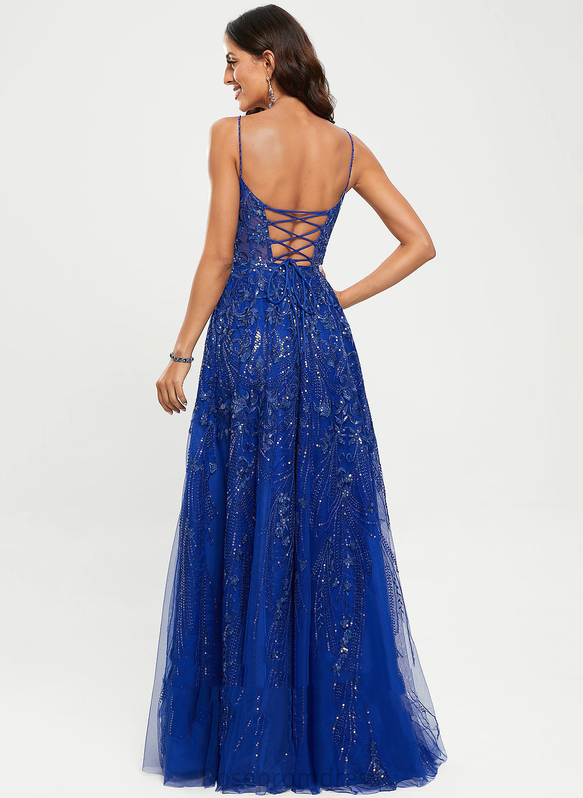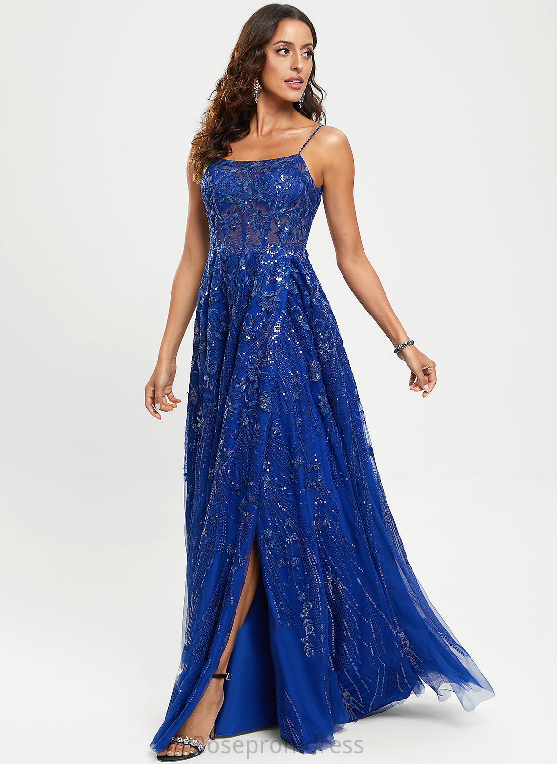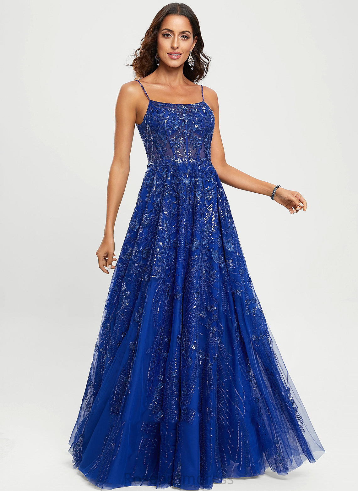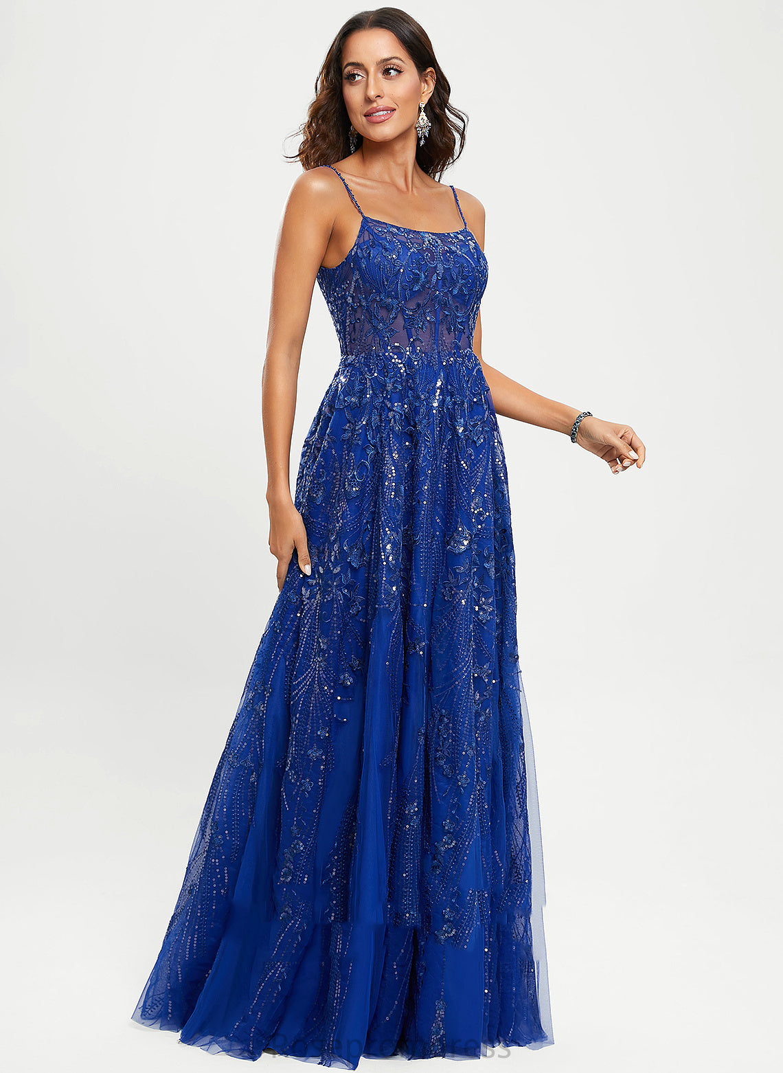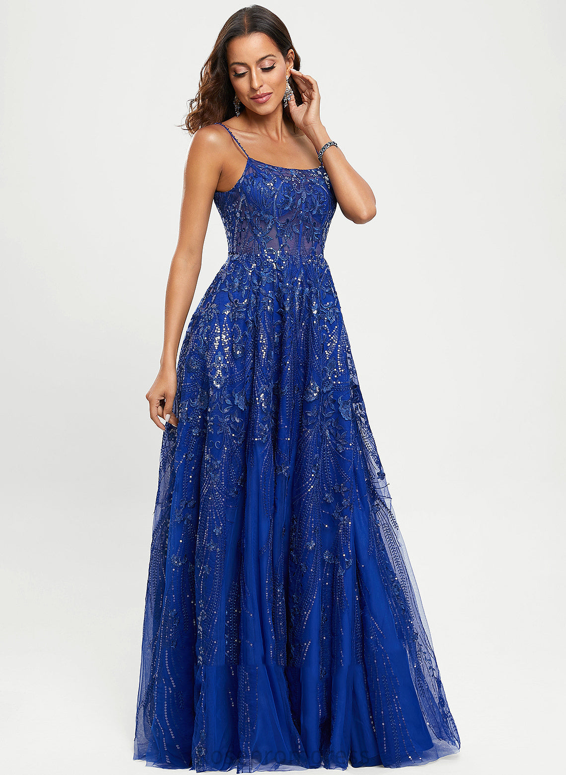 Prom Dresses Sequins A-Line Lace Floor-Length Scoop With Sienna Tulle