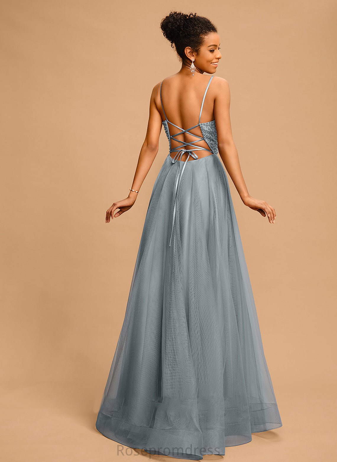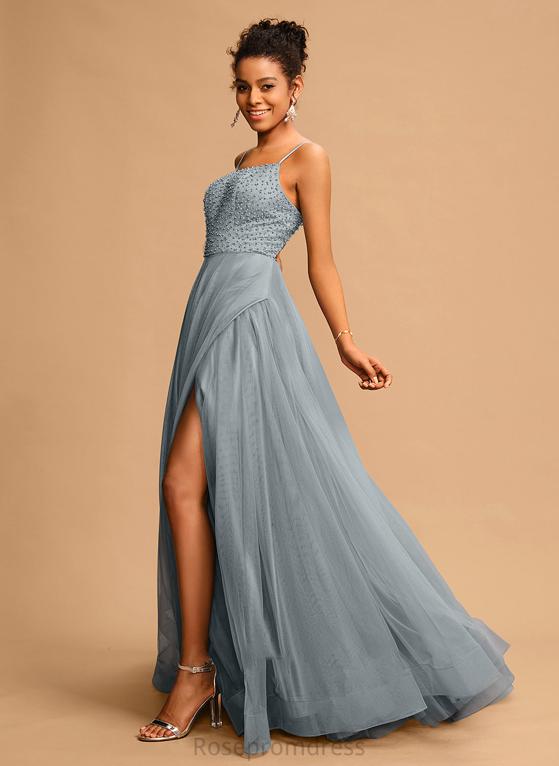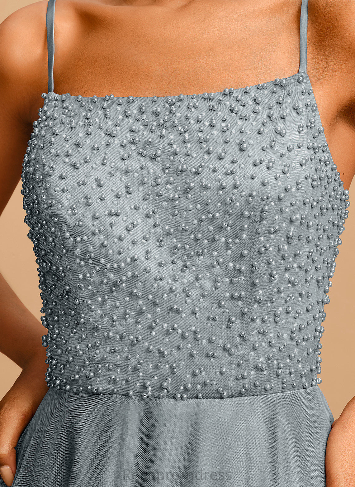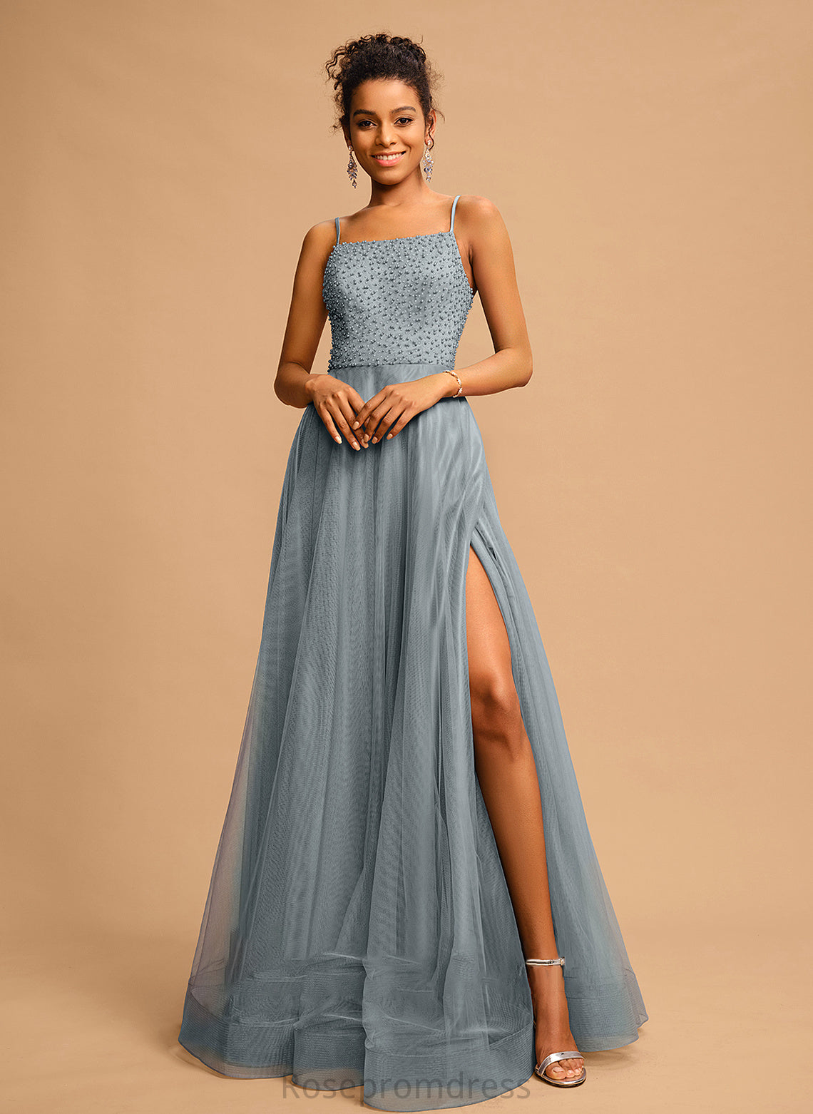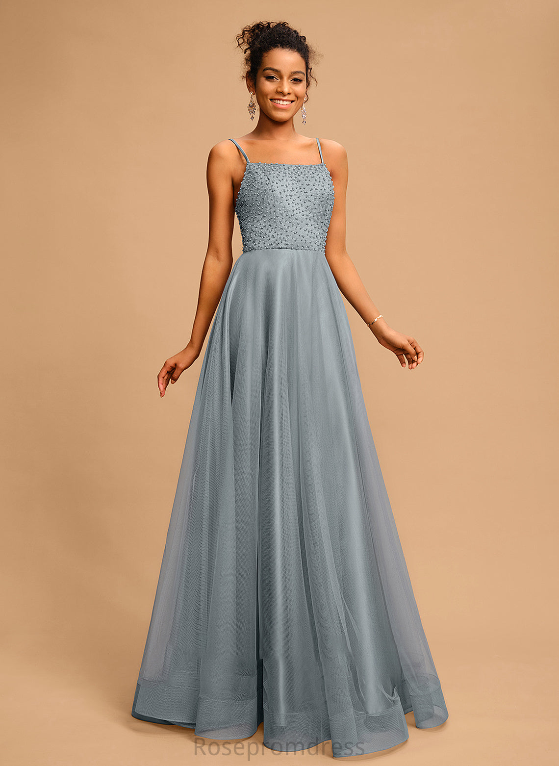 Prom Dresses Sequins Gabrielle Square Floor-Length Beading Neckline Tulle Ball-Gown/Princess With