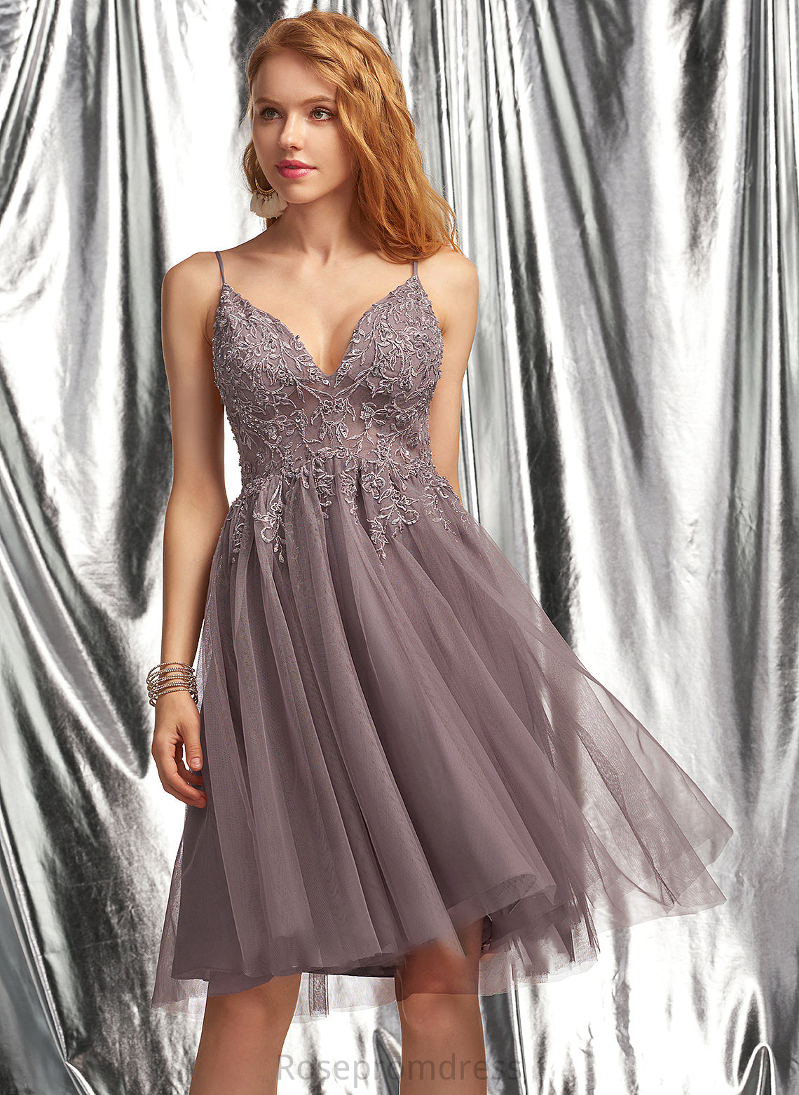 Prom Dresses Sequins With Tulle A-Line V-neck Beading Gwendoline Knee-Length