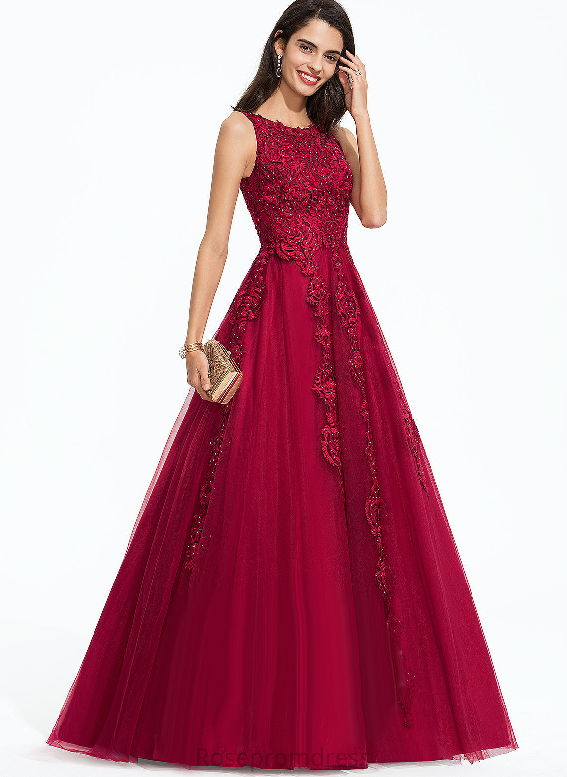 Prom Dresses Sweep Ball-Gown/Princess Scoop Beading Tulle Train Lace Caroline With