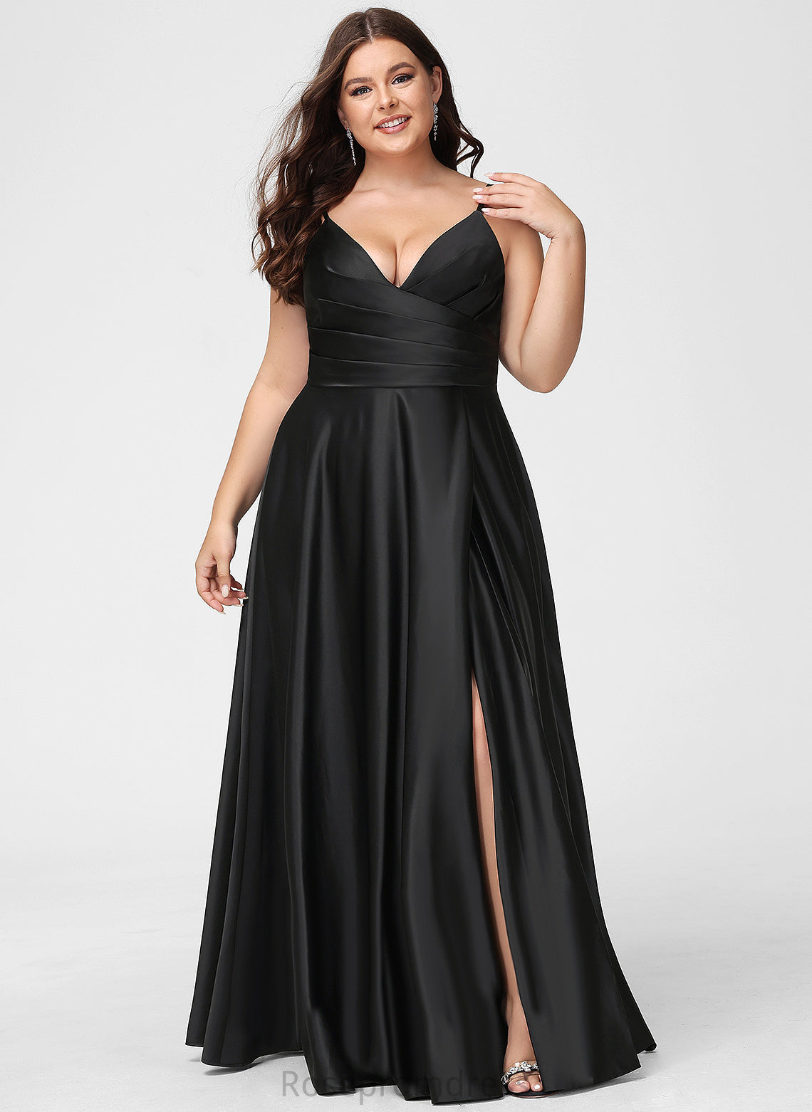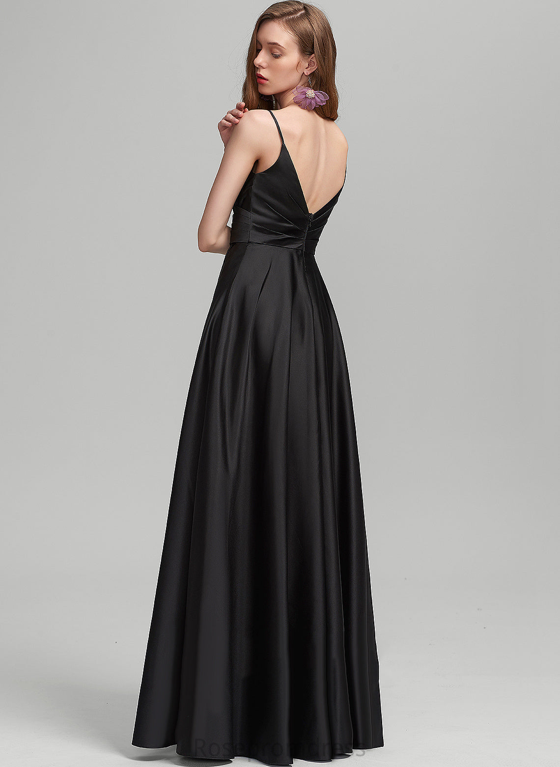 Prom Dresses V-neck A-Line Savanah With Floor-Length Satin Ruffle