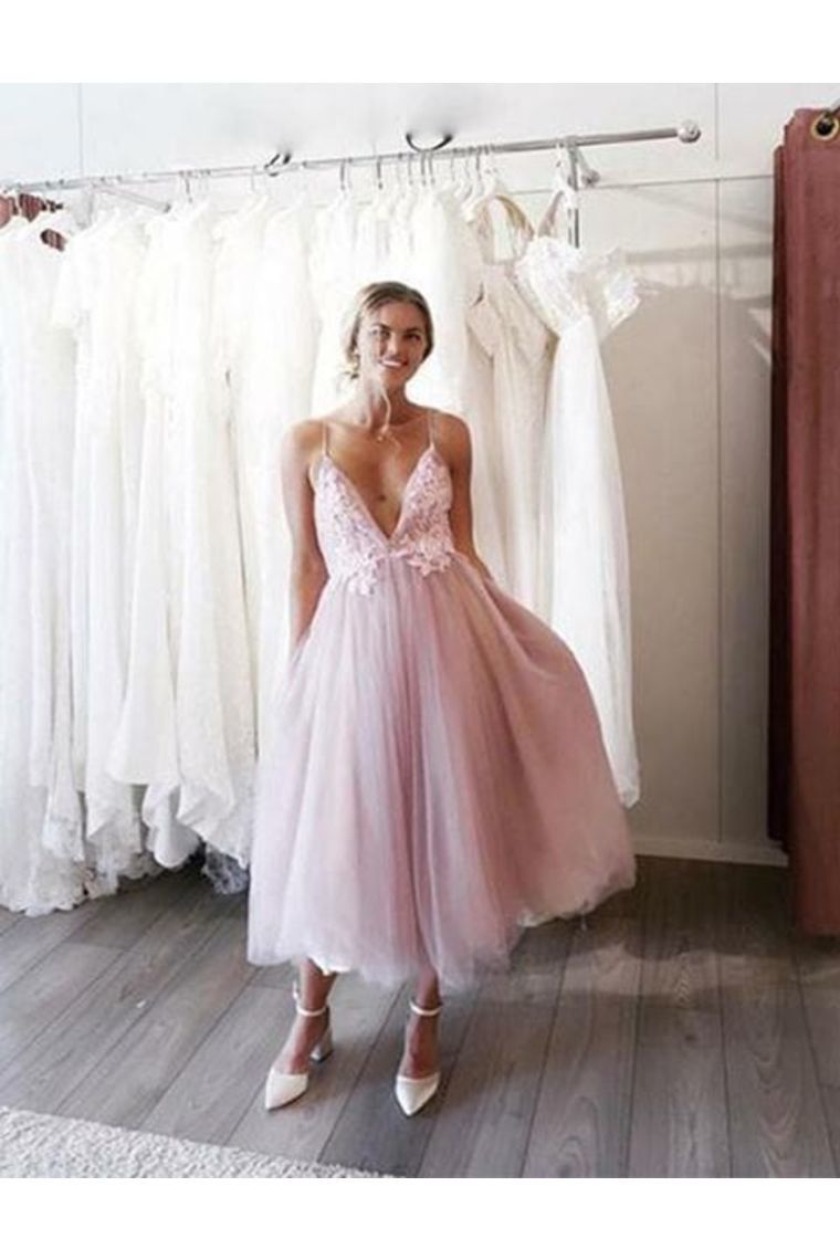 Prom/Homecoming Dress Spaghetti Straps Tulle A Line With Applique