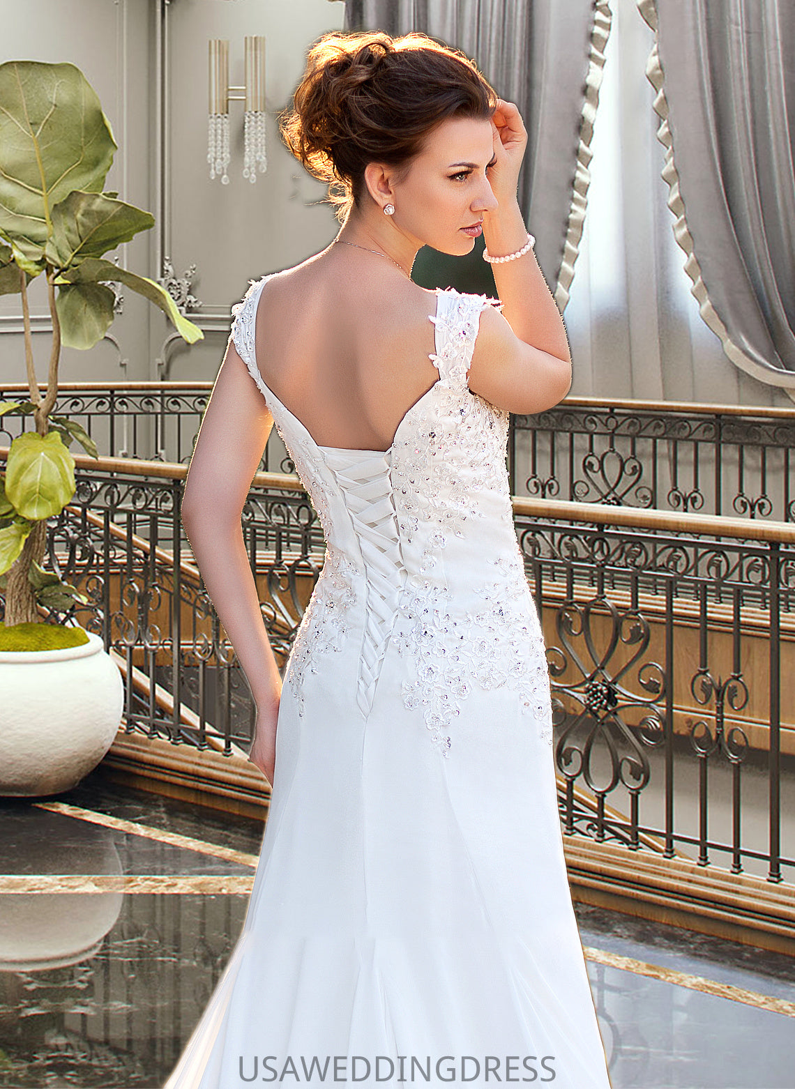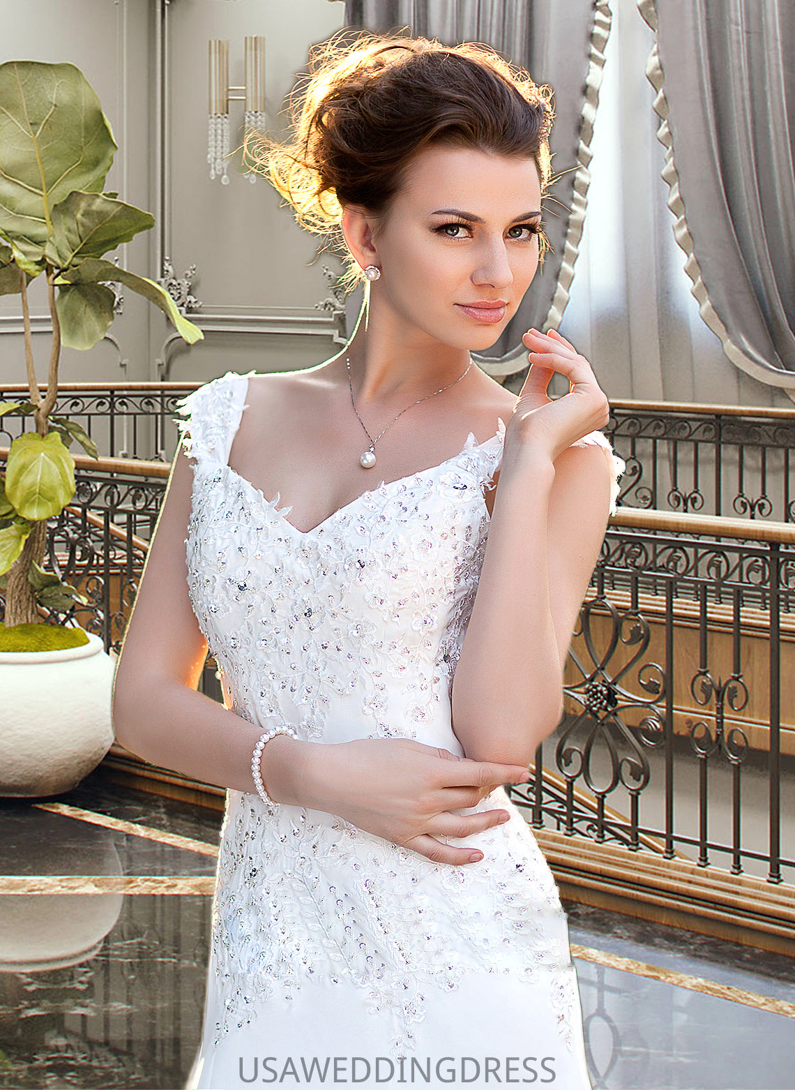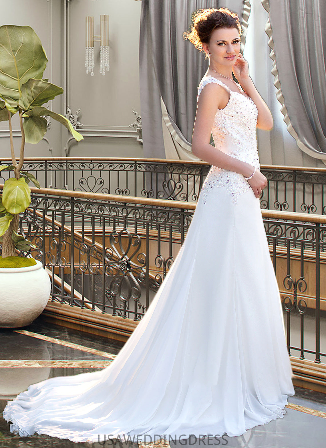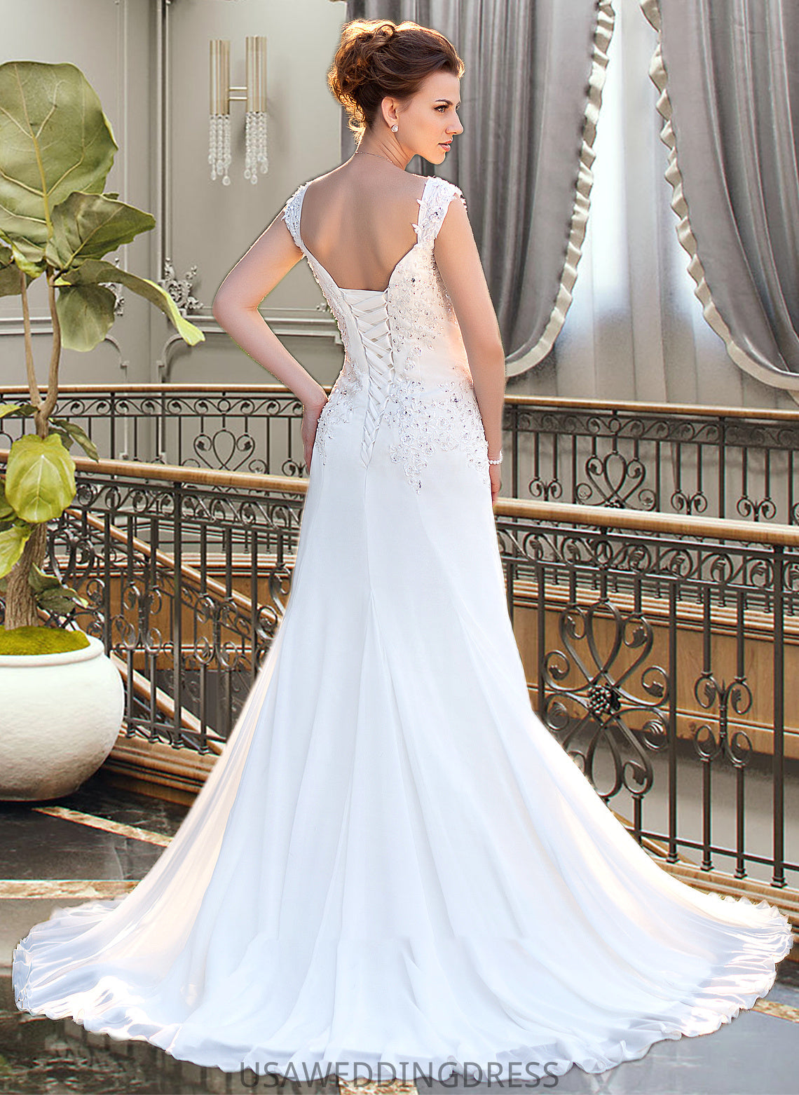 Rachel A-Line V-neck Court Train Chiffon Wedding Dress With Lace Beading Sequins DSP0013776