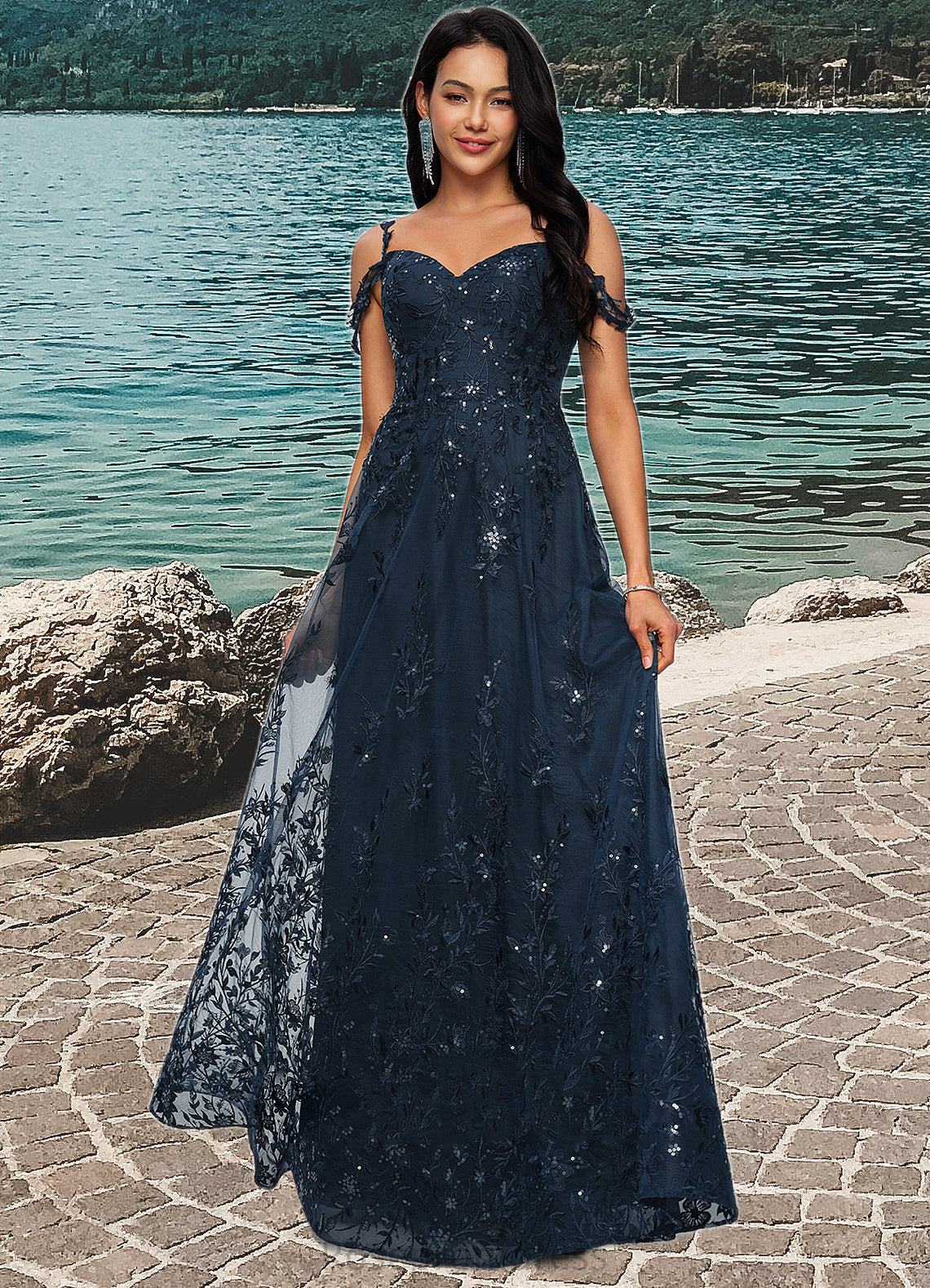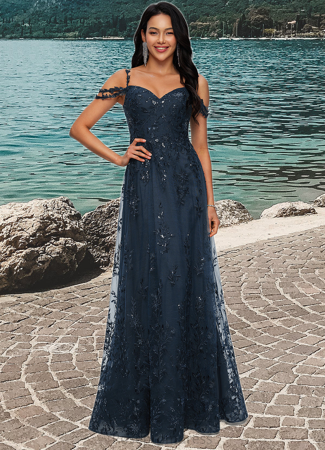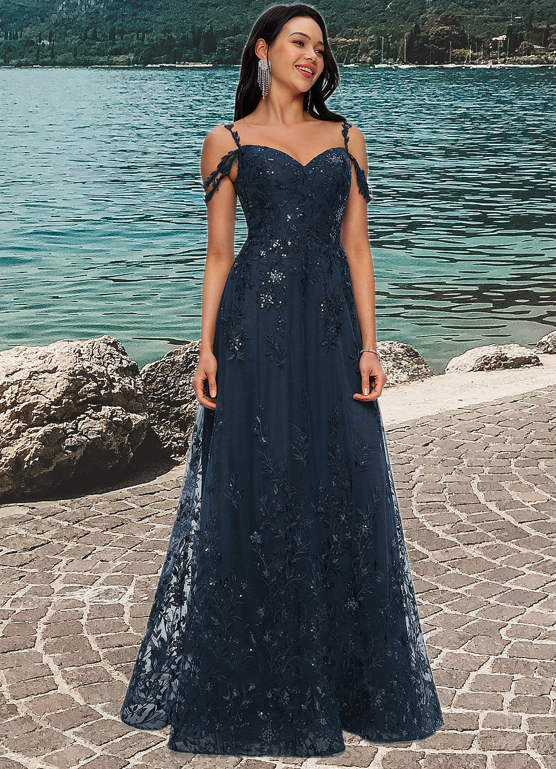 Rachel A-line V-Neck Floor-Length Lace Prom Dresses With Sequins SRSP0022222