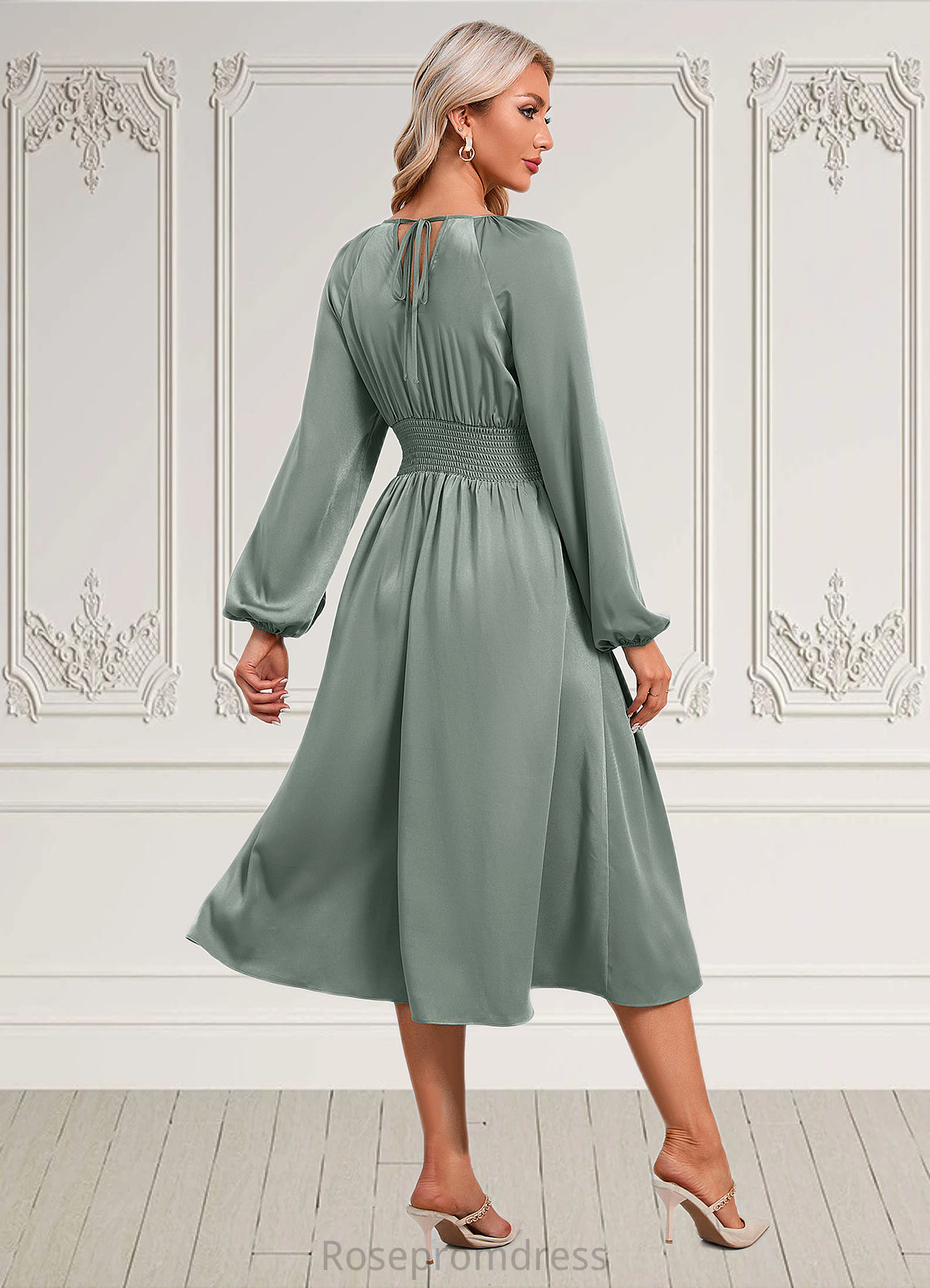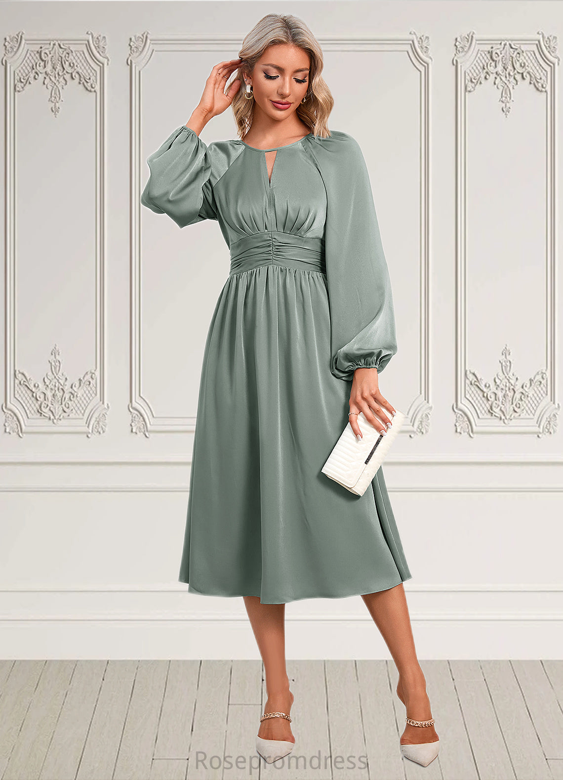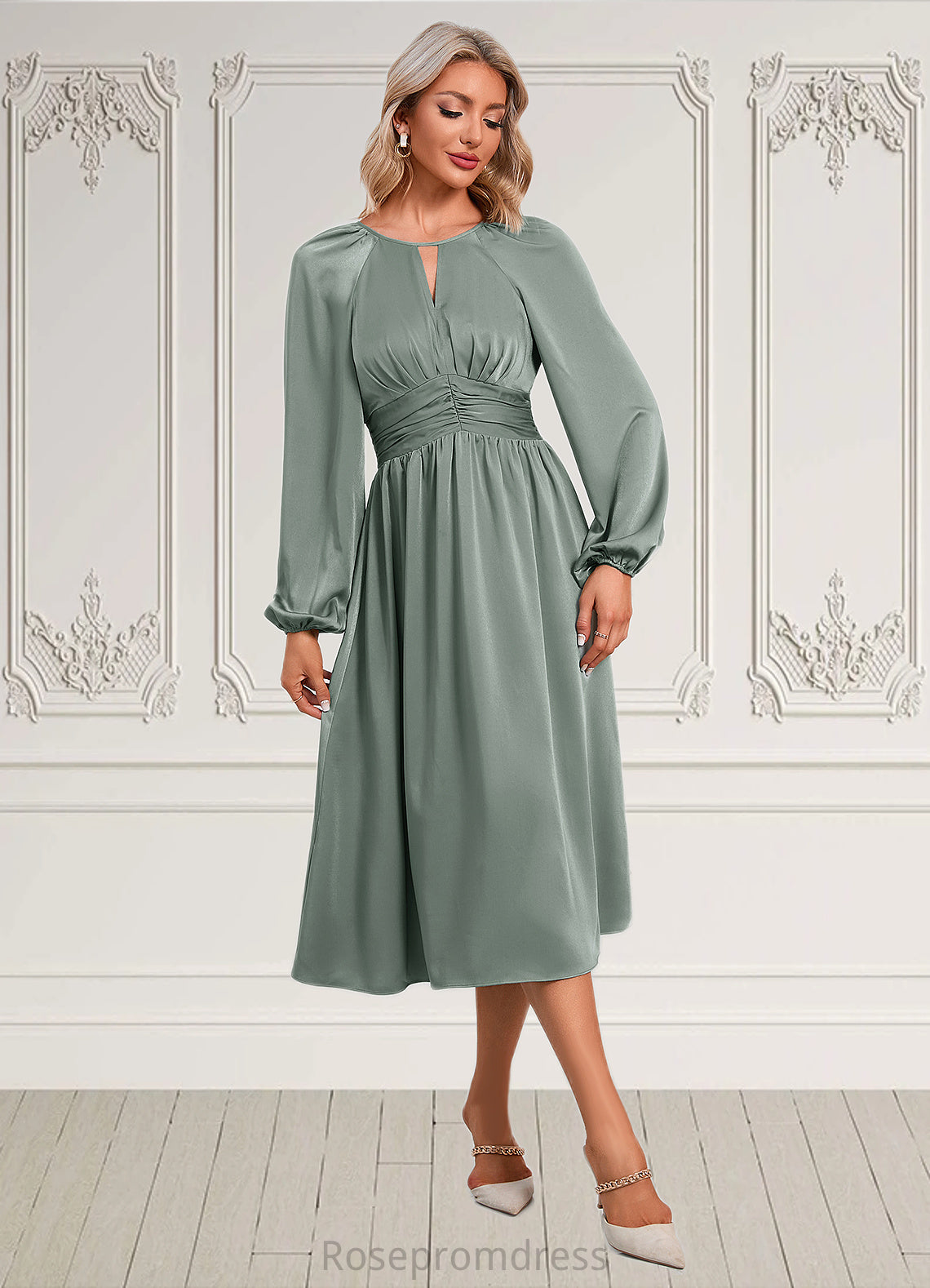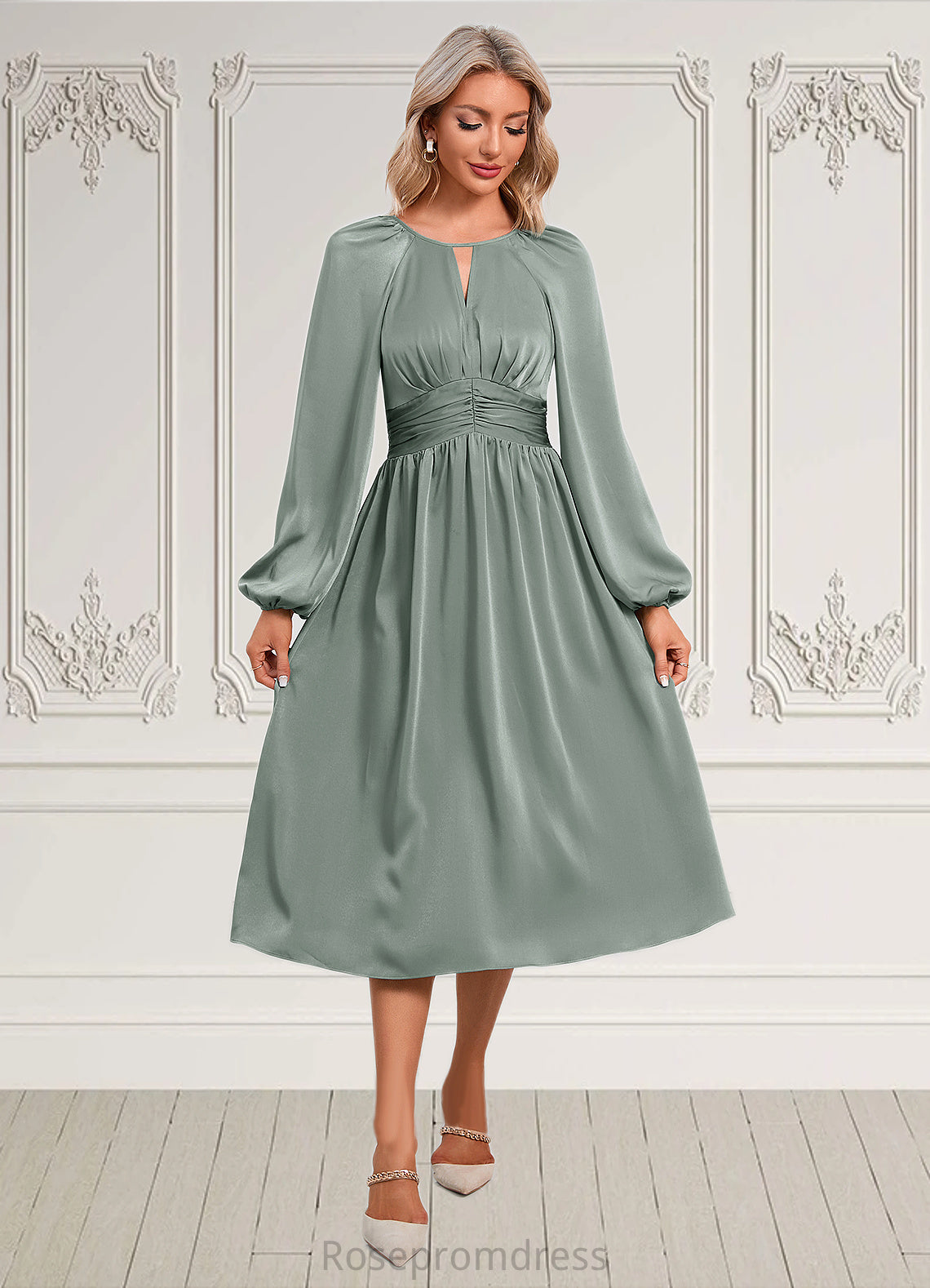 Rachel Ruffle Scoop Elegant A-line Satin Dresses SRSP0022375