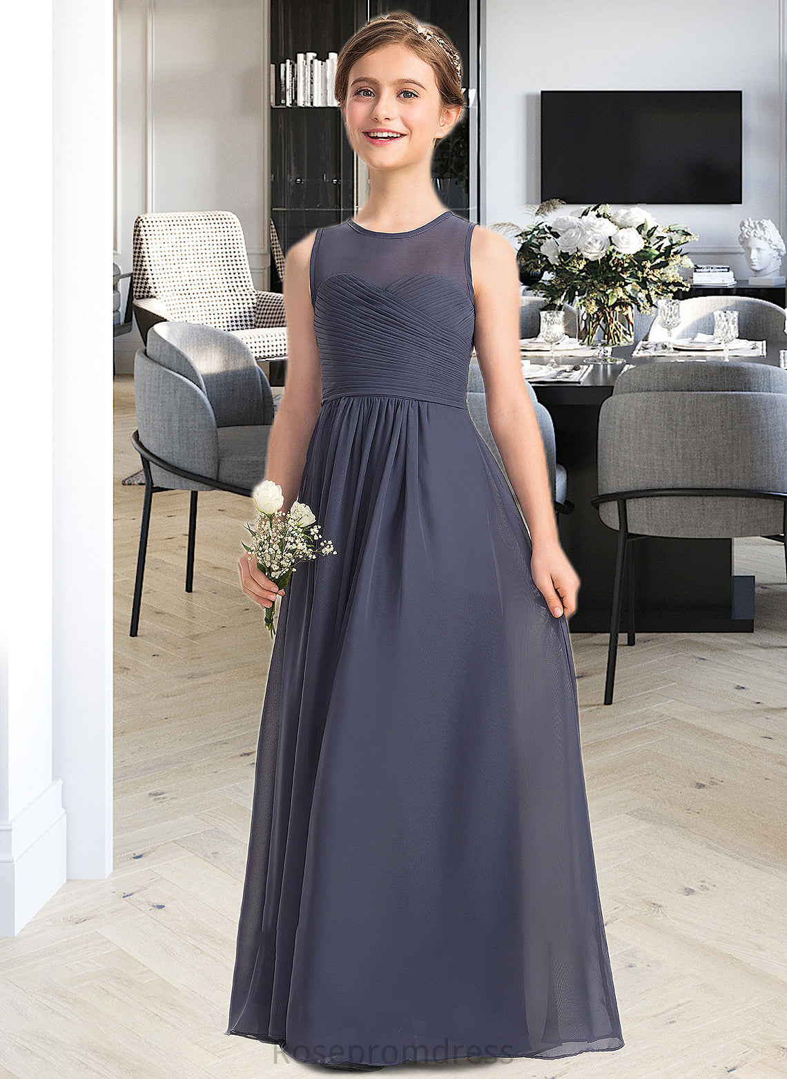 Raquel A-Line Scoop Neck Floor-Length Chiffon Junior Bridesmaid Dress With Ruffle SRSP0013533