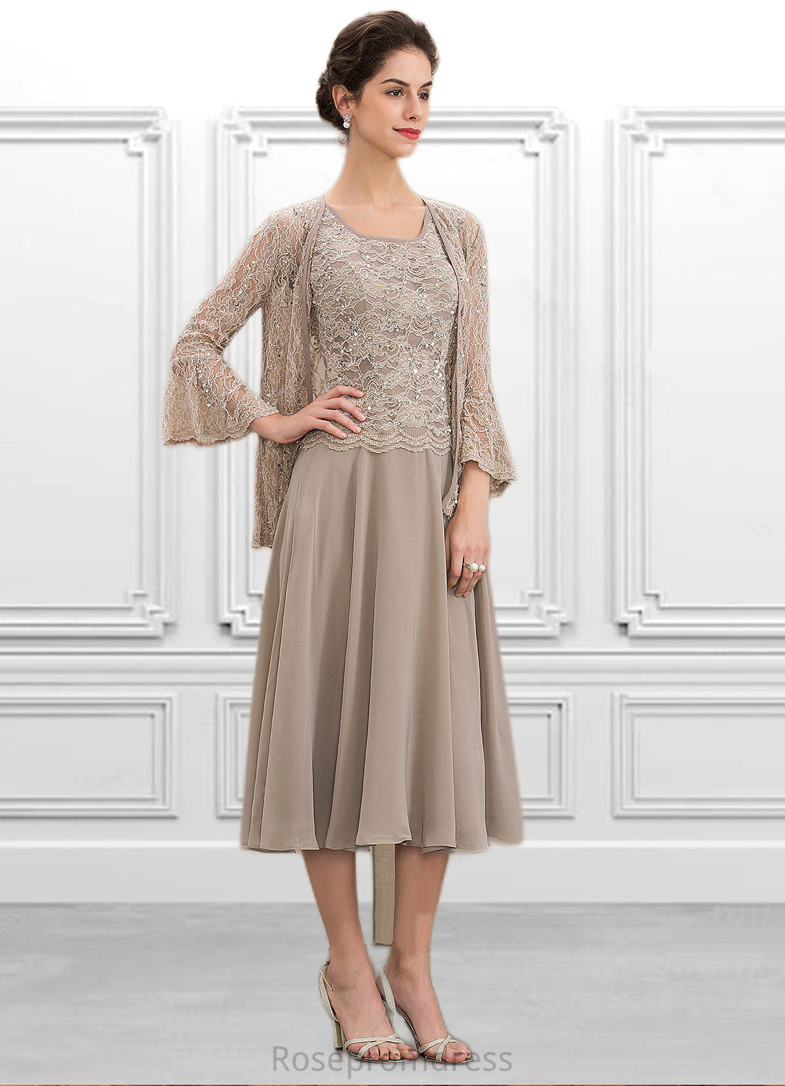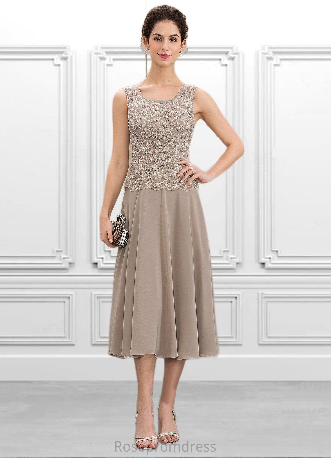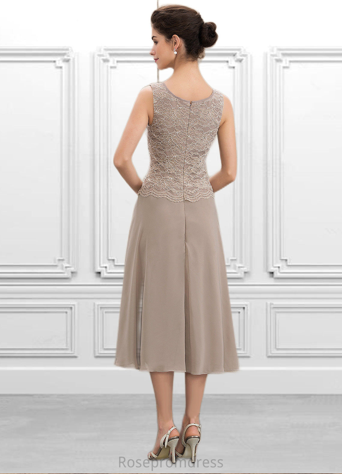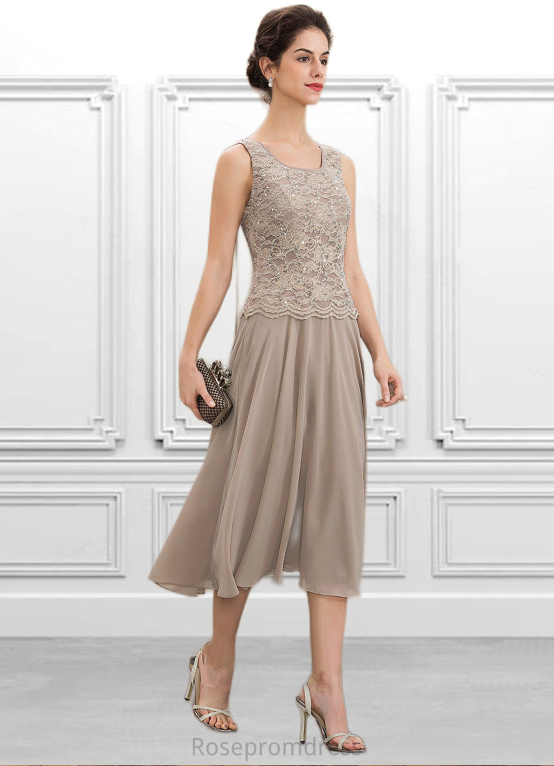 Rayna A-Line Scoop Neck Tea-Length Chiffon Lace Mother of the Bride Dress With Sequins SRS126P0014816