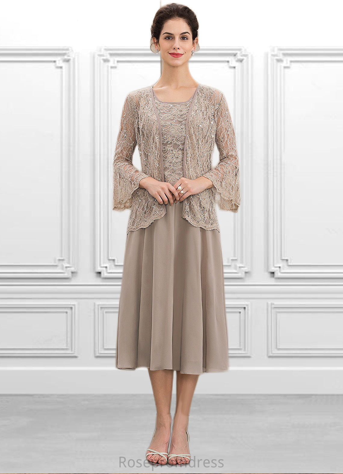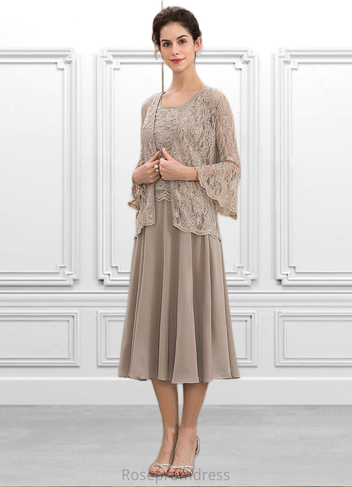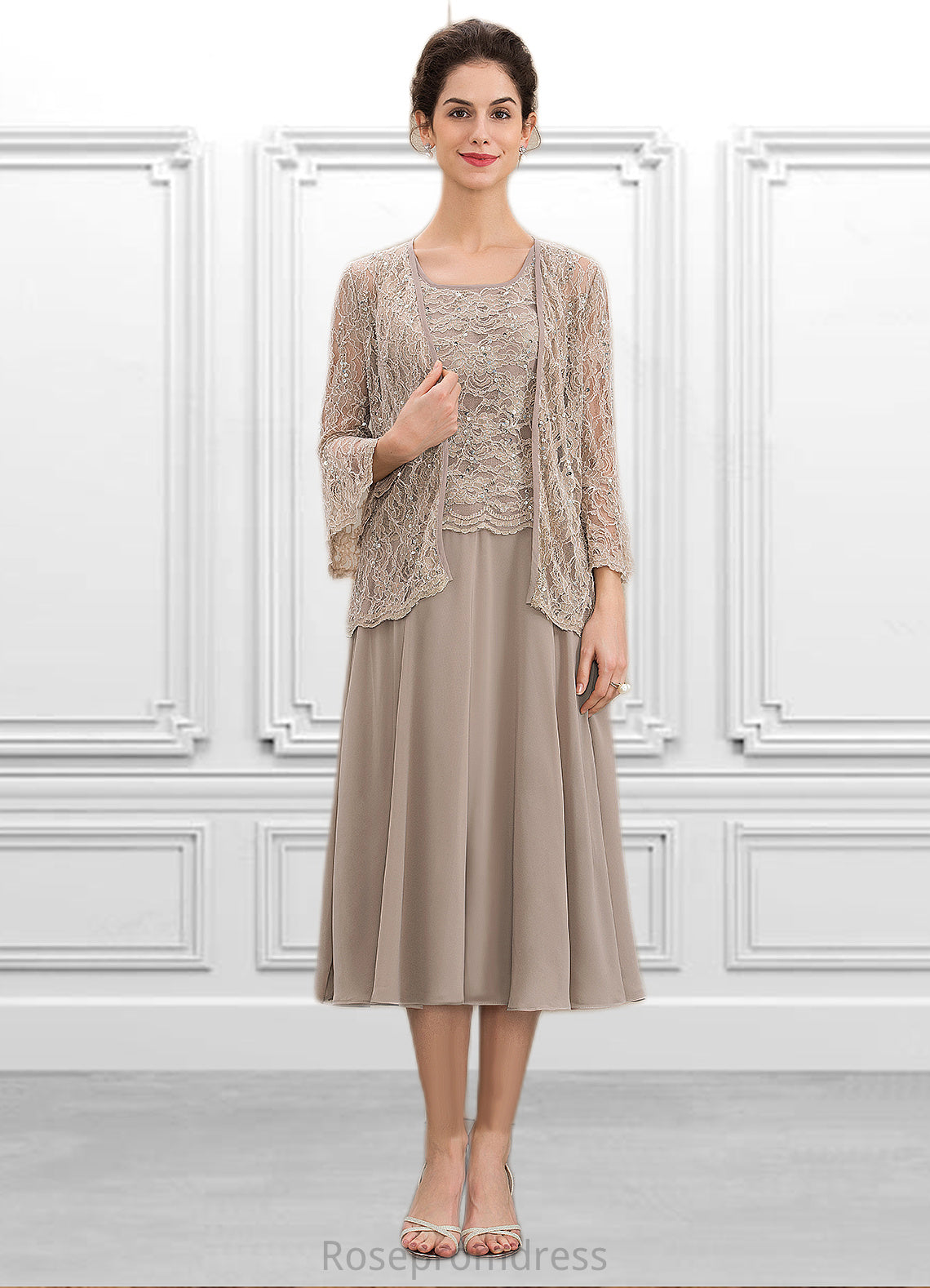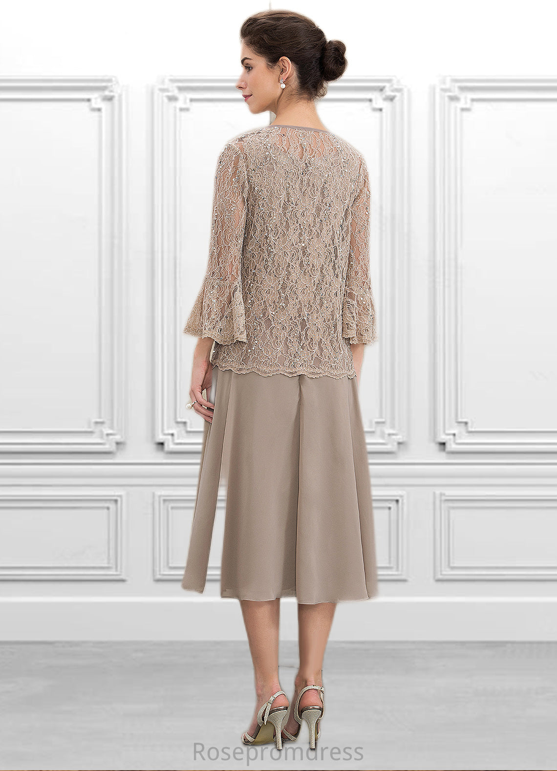 Rayna A-Line Scoop Neck Tea-Length Chiffon Lace Mother of the Bride Dress With Sequins SRS126P0014816