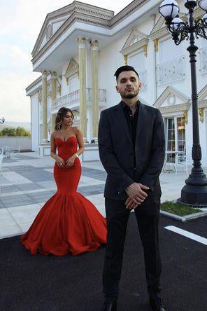 Red Chic Sweetheart Strapless Sleeveless Mermaid Satin Prom Dresses RS761
