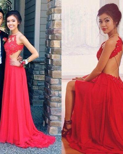 Red Backless Sexy Lace Unique Halter A-Line Slit Criss Cross Sleeveless Prom Dresses RS948