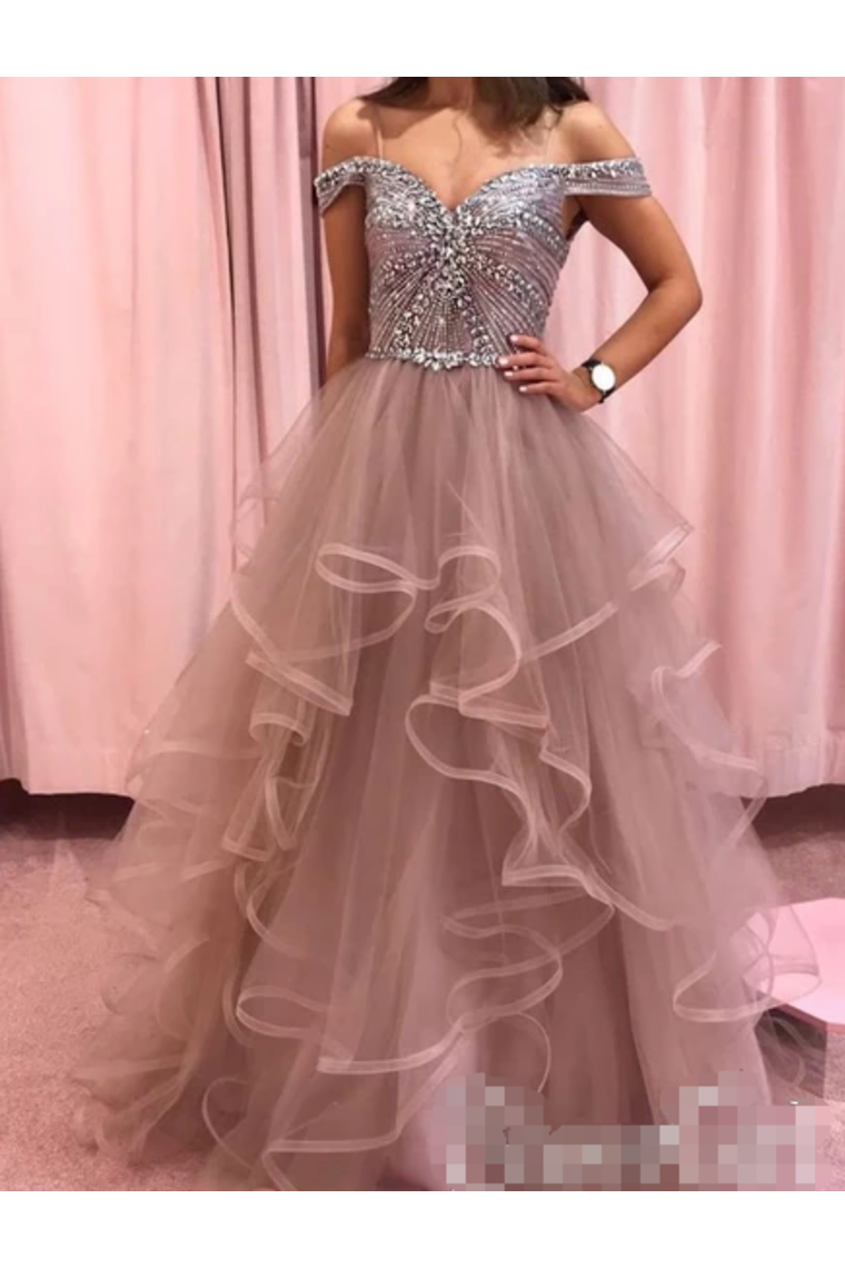 Rhinestones Bodice Multi Layered Bottom Classic Prom Dresses Tulle Party Dresses