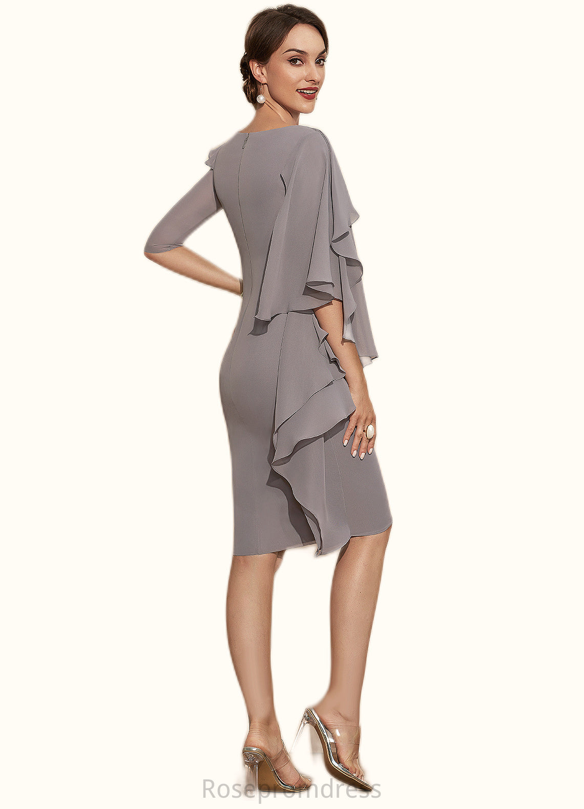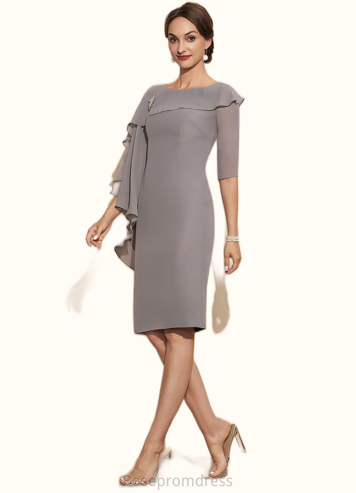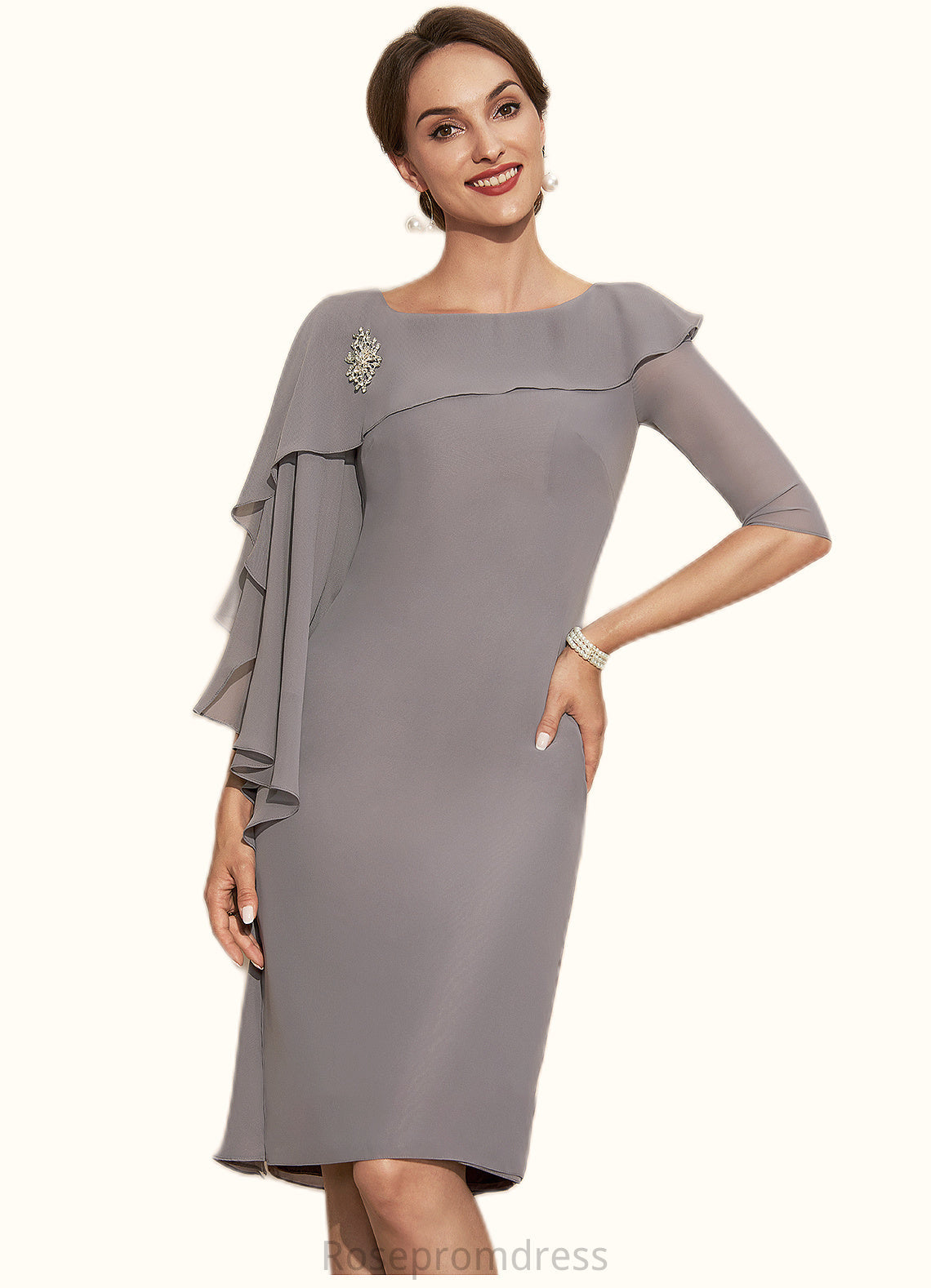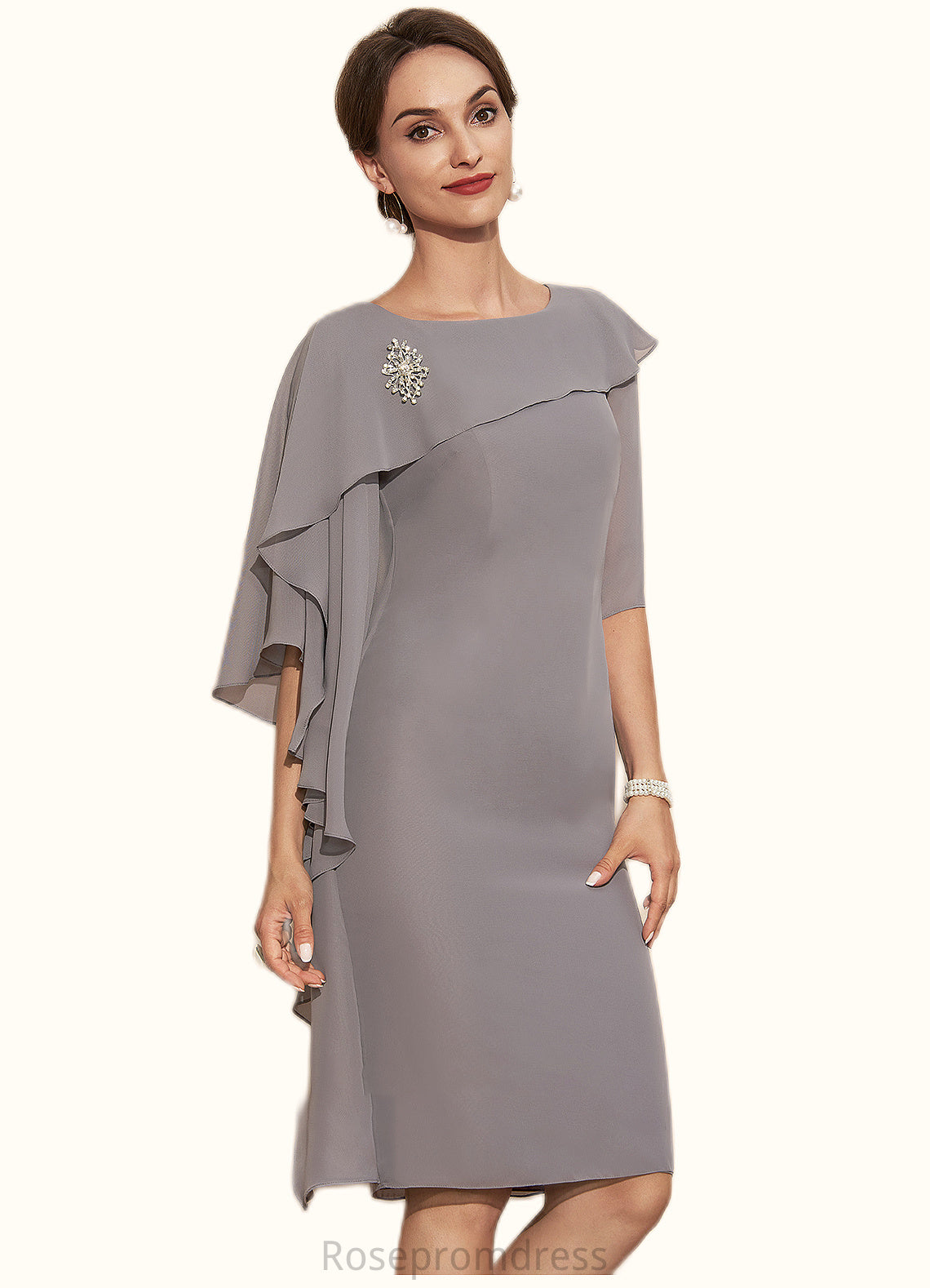 Rihanna Sheath/Column Scoop Neck Knee-Length Chiffon Mother of the Bride Dress With Crystal Brooch Cascading Ruffles SRS126P0014943