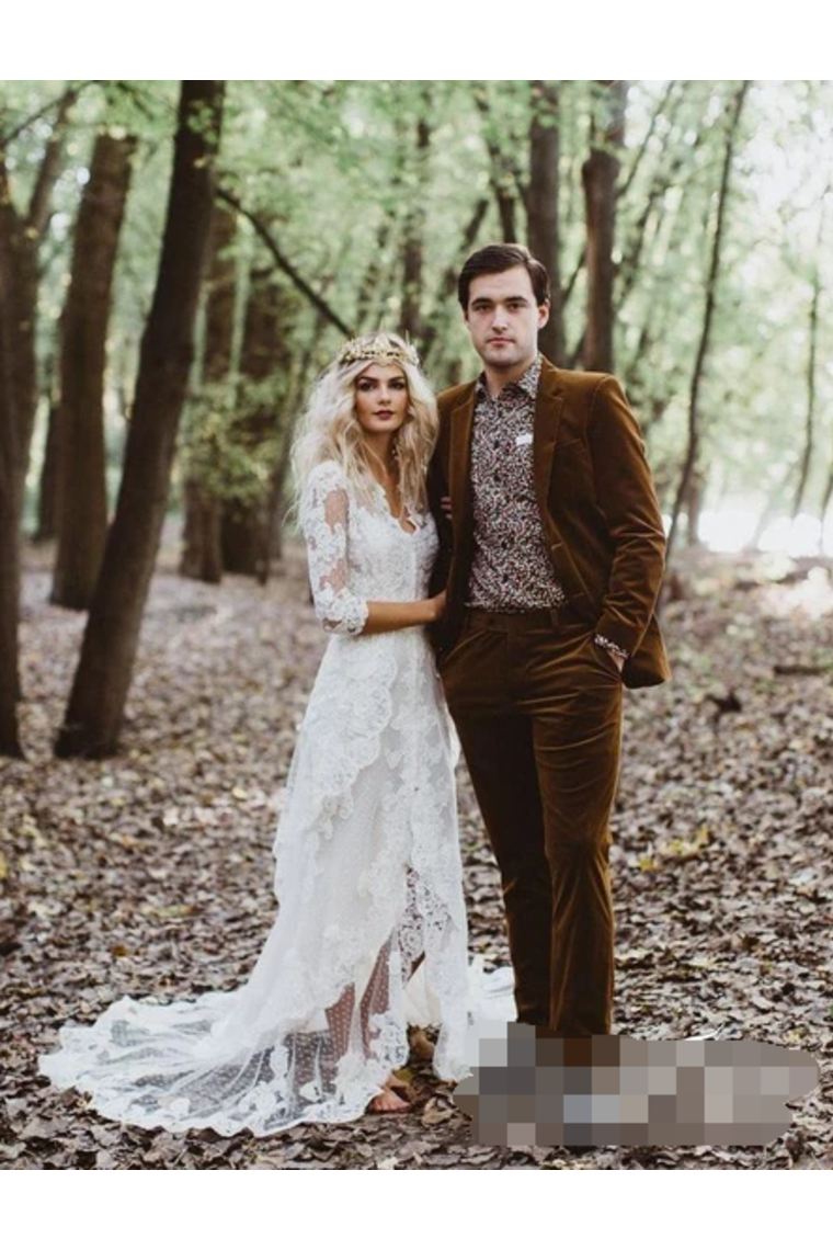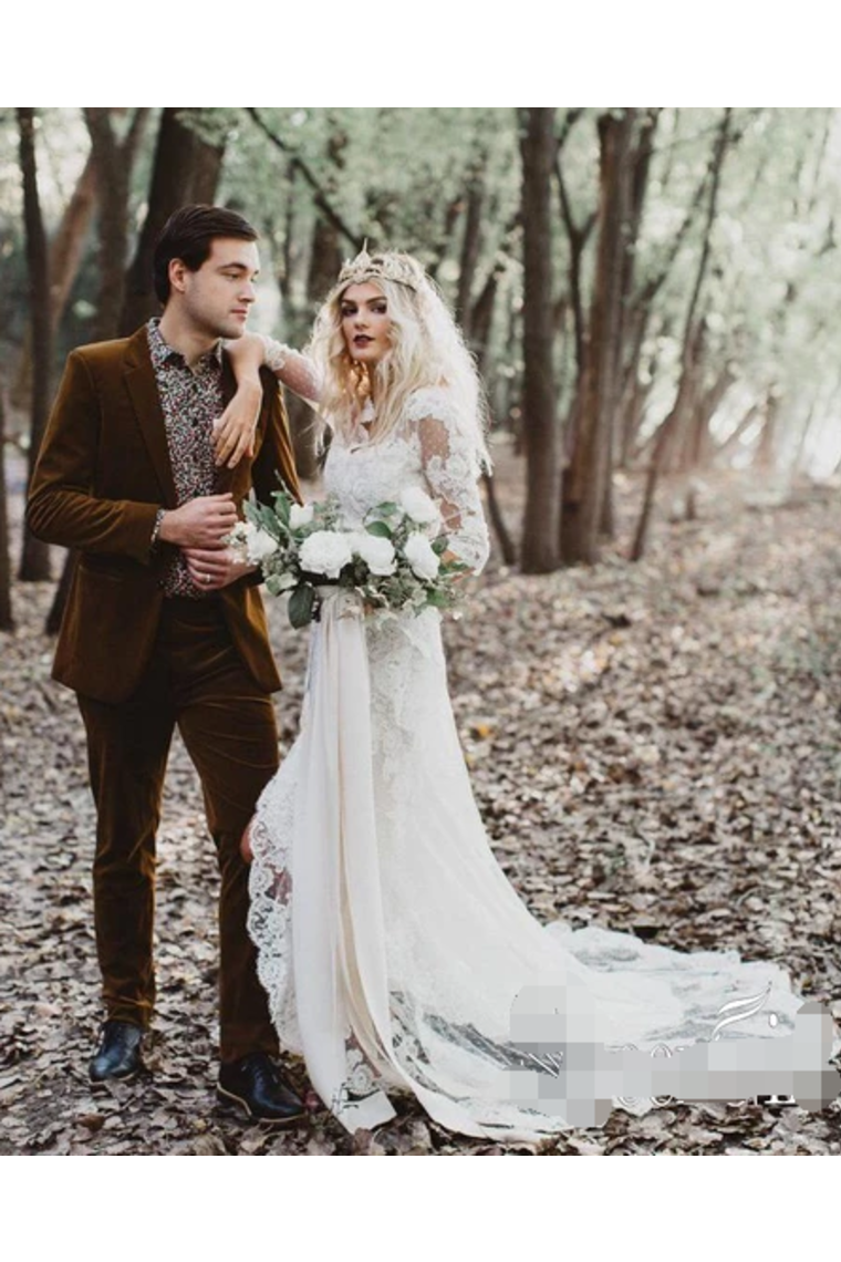 Risqu�� Sheath With Unlined Sleeves Wedding Dress Front Slit Ivory Lace Bridal Dress