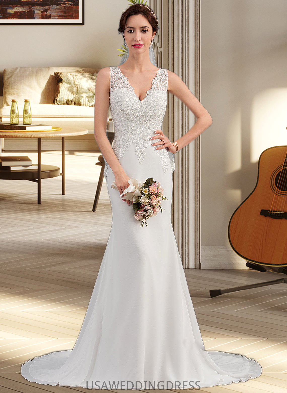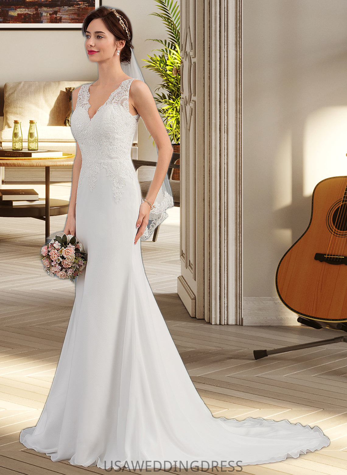Rita Trumpet/Mermaid V-neck Court Train Chiffon Wedding Dress DSP0013788