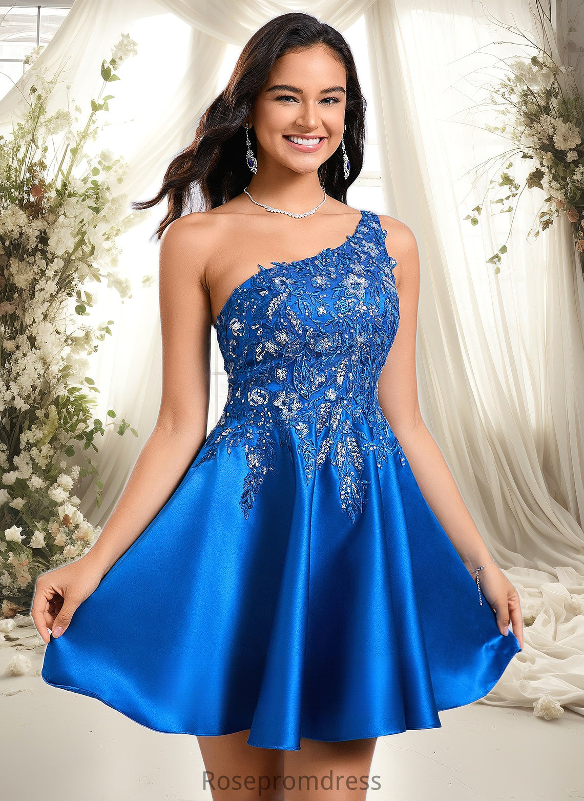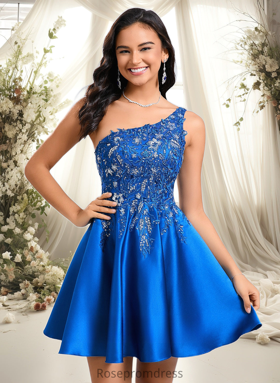 Riya A-line One Shoulder Short Satin Homecoming Dress With Appliques Lace Sequins DSP0025657