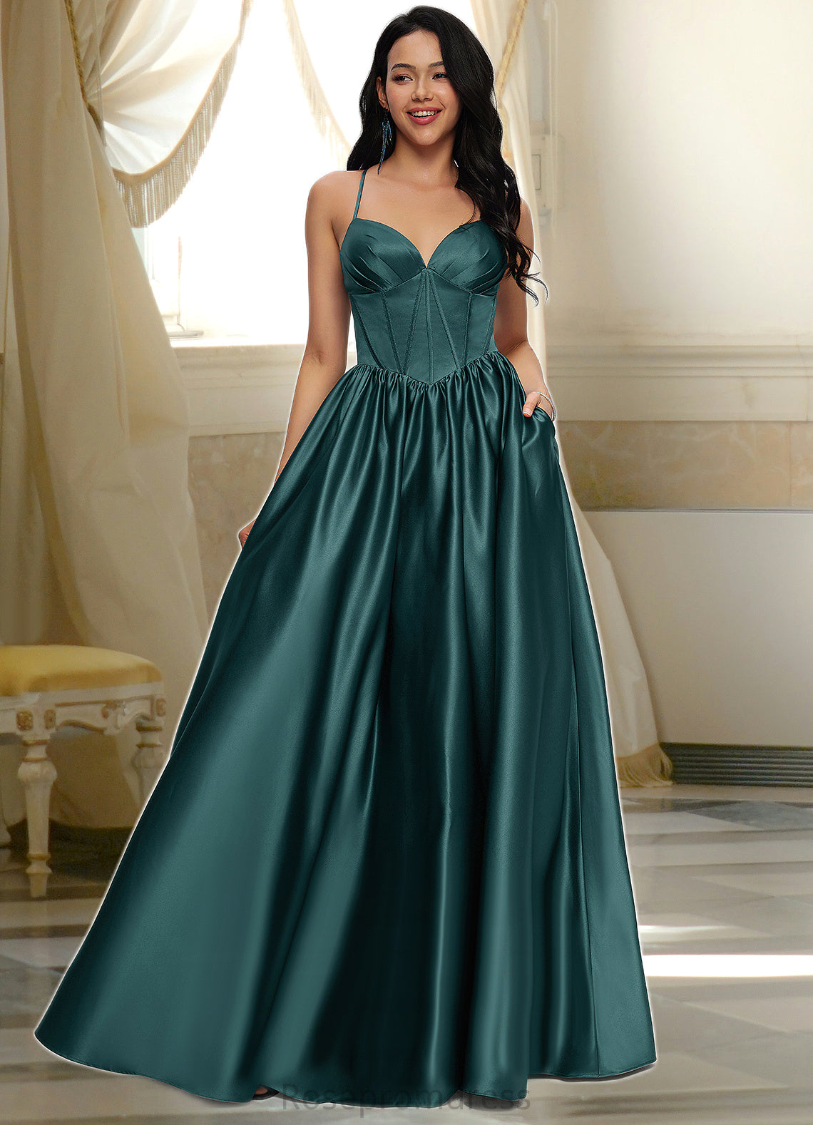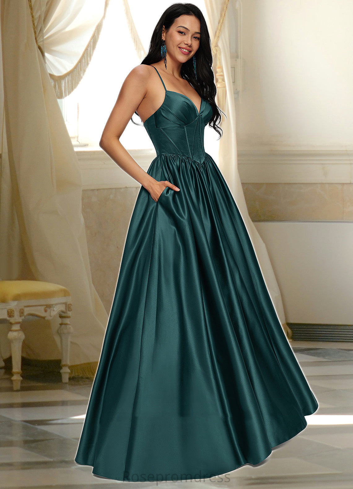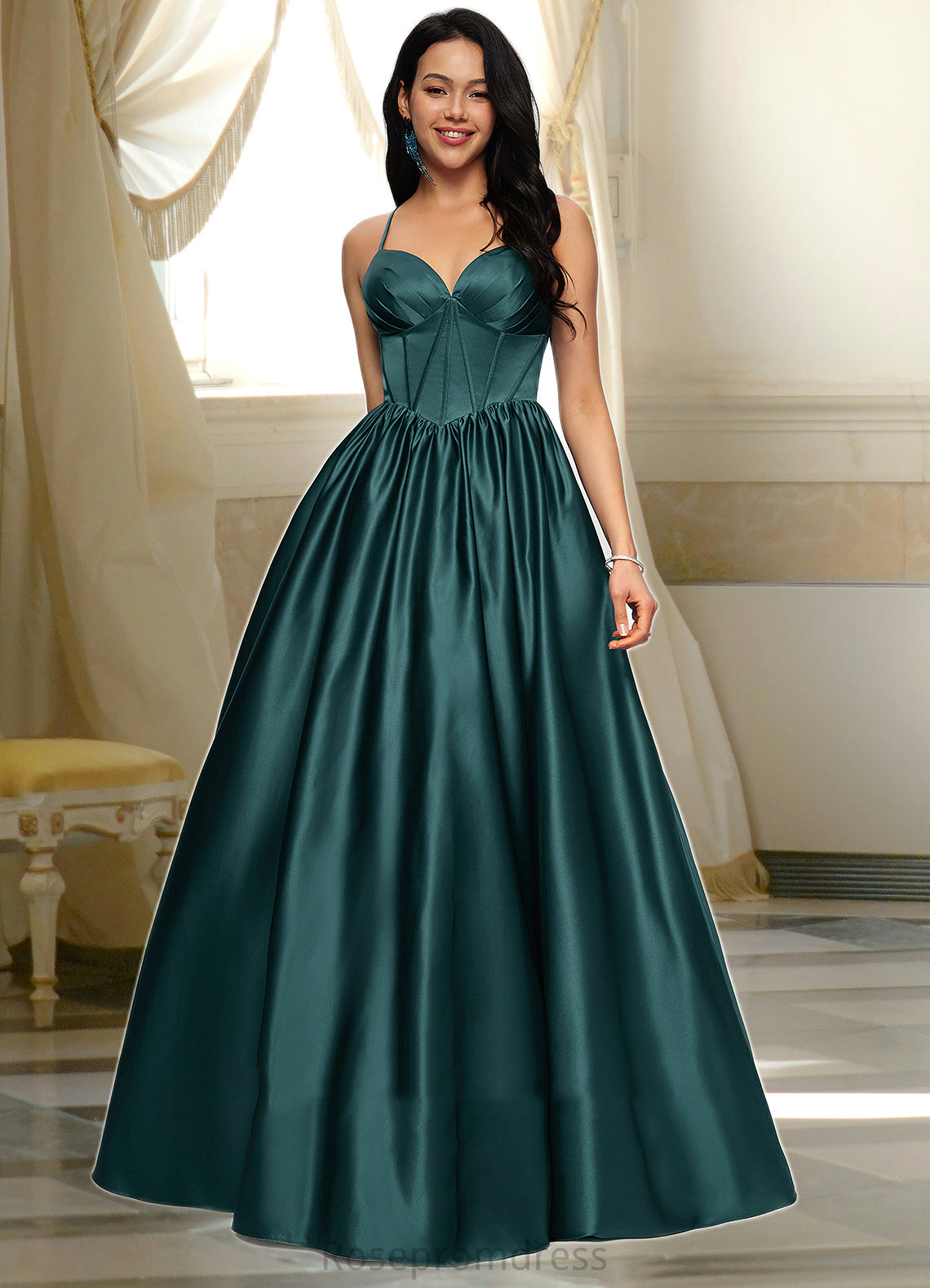 Roberta Ball-Gown/Princess V-Neck Floor-Length Satin Prom Dresses With Pleated SRSP0022230