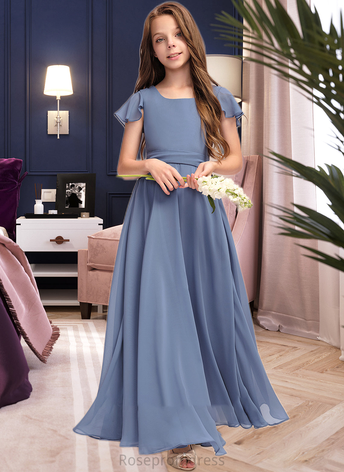 Rosalie A-Line Scoop Neck Floor-Length Chiffon Junior Bridesmaid Dress With Bow(s) SRSP0013337
