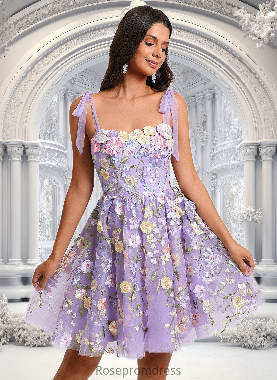 Rosalyn A-line Scoop Short Floral Lace Homecoming Dress With Bow 3D Floral DSP0025695