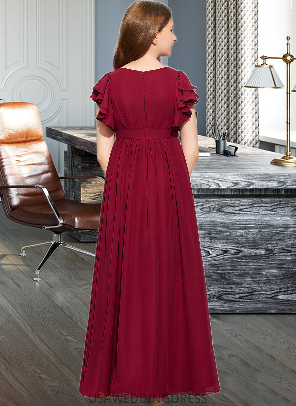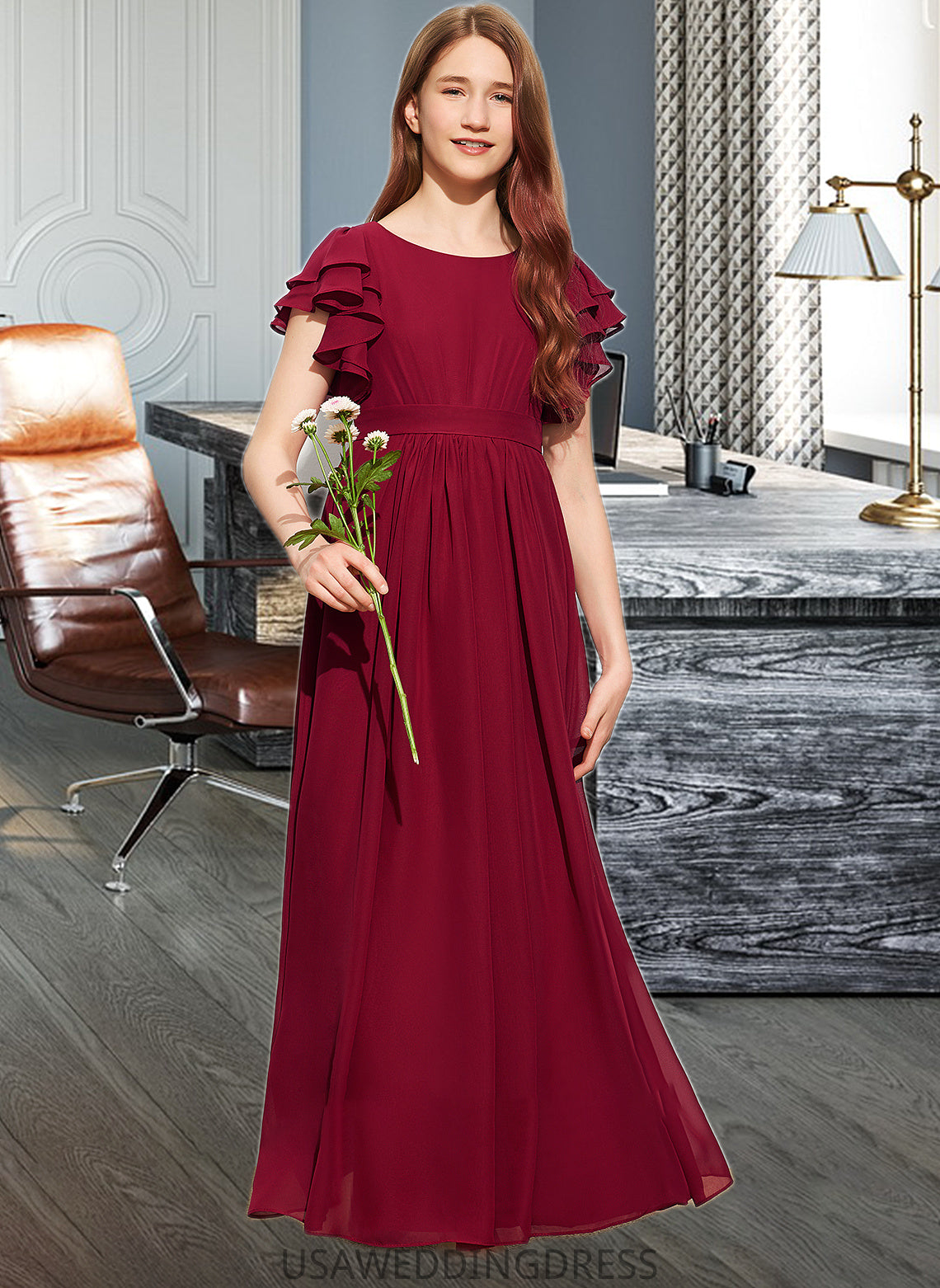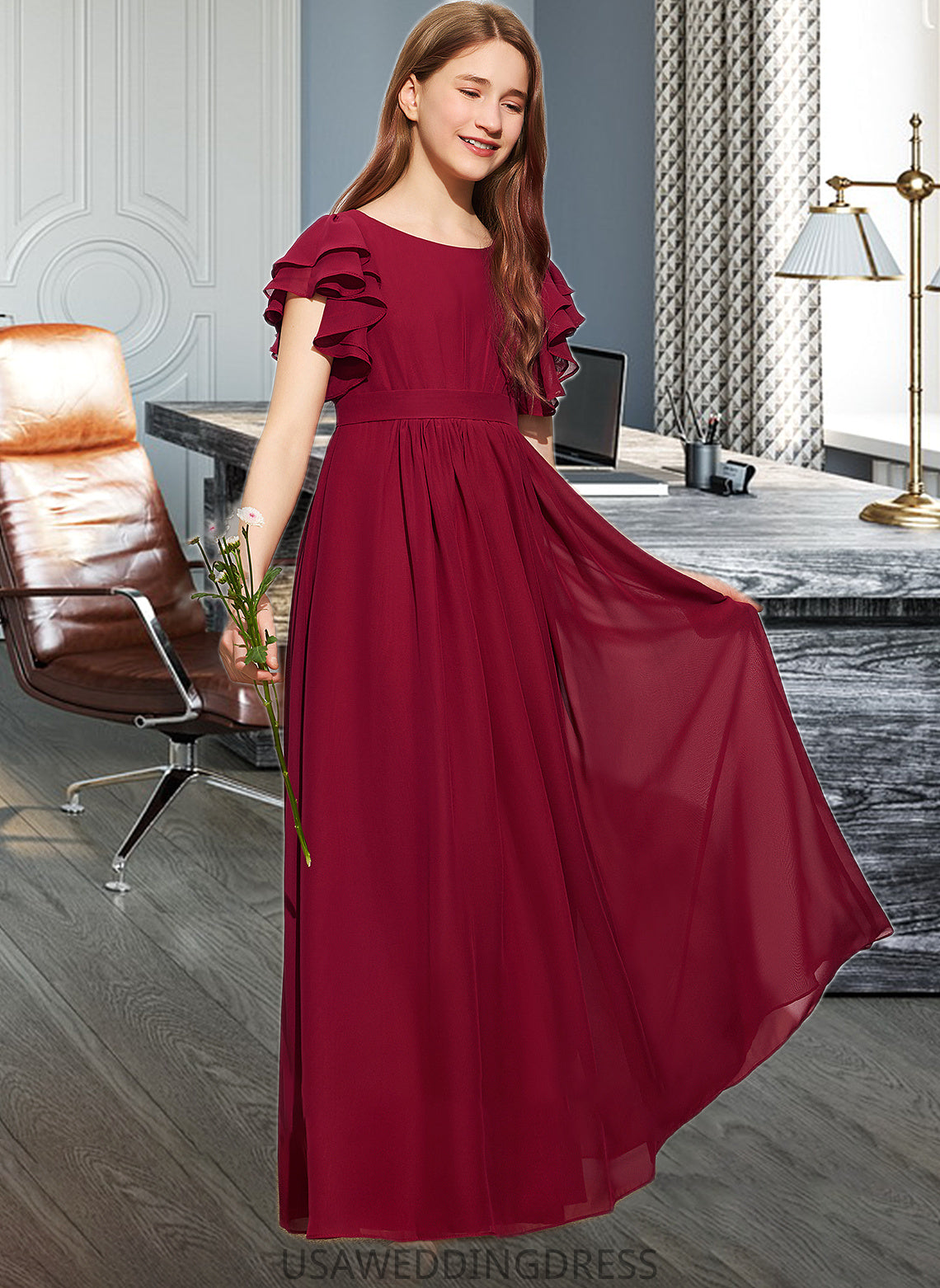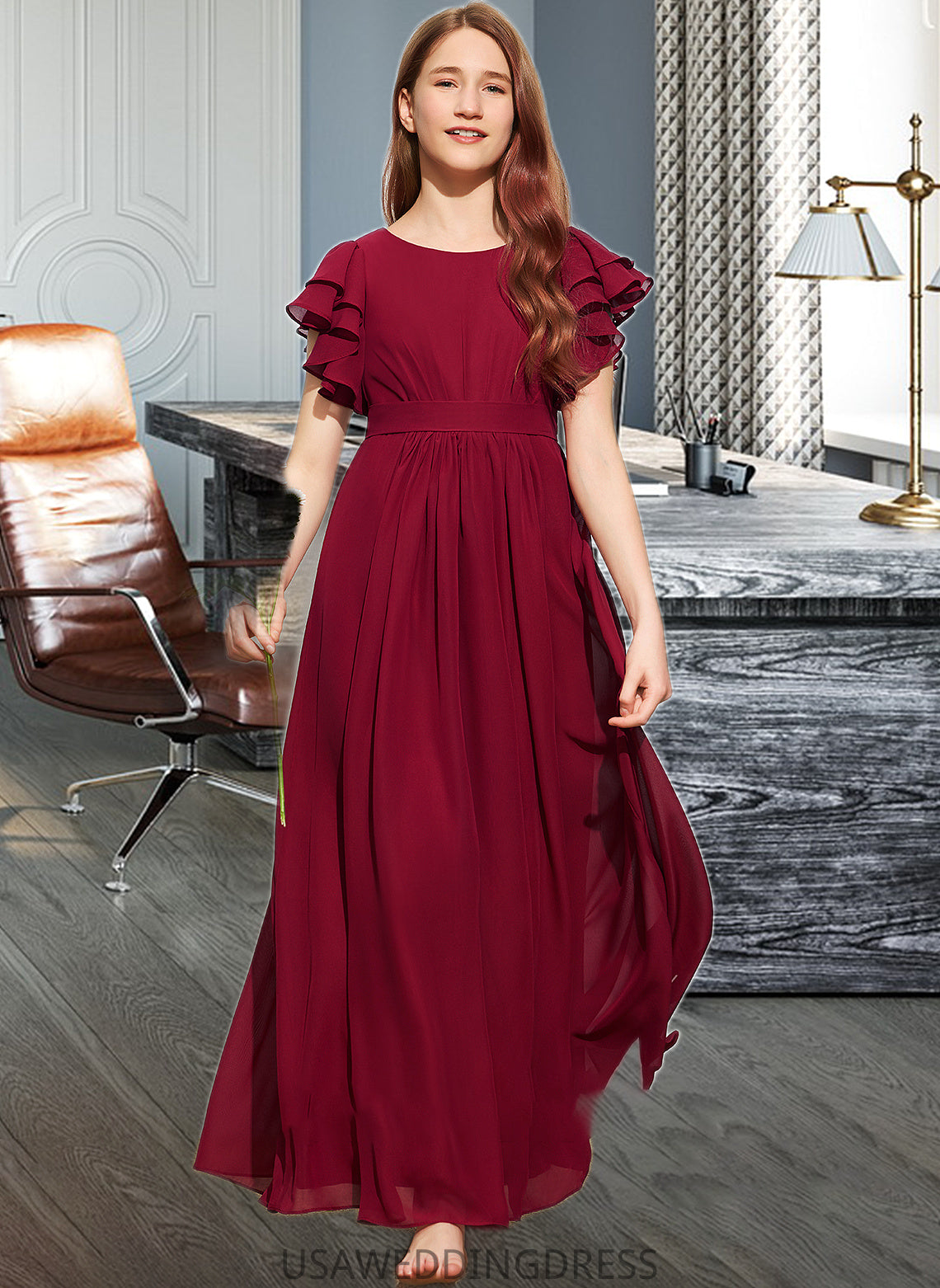 Rose A-Line Scoop Neck Floor-Length Chiffon Junior Bridesmaid Dress With Cascading Ruffles DSP0013417