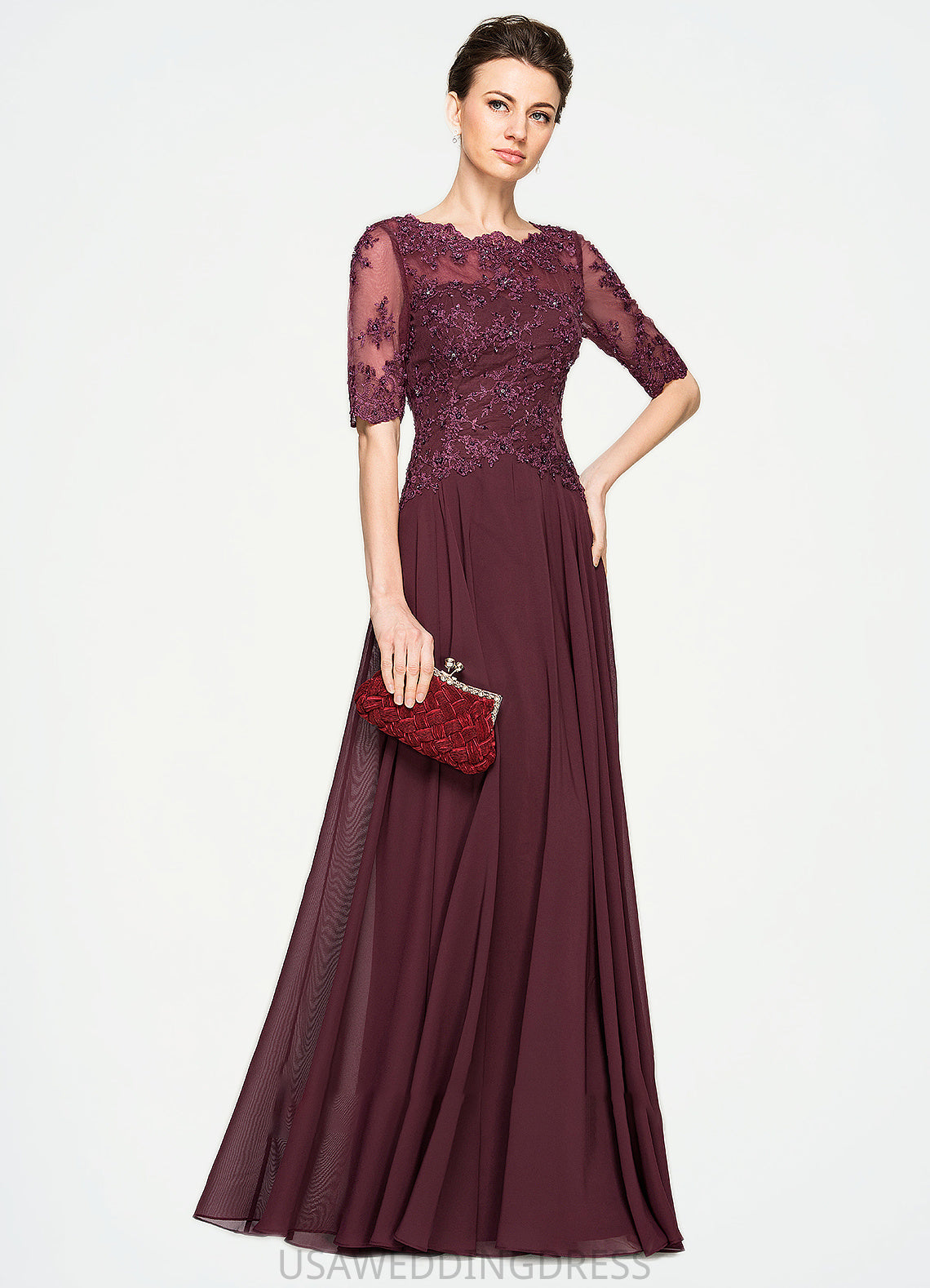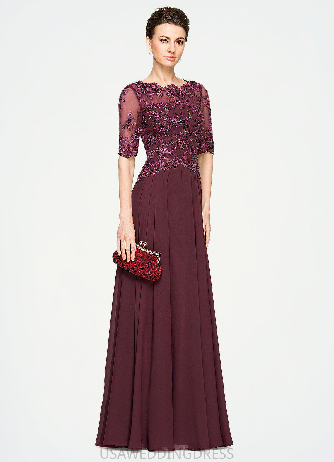 Rose A-Line Scoop Neck Floor-Length Chiffon Lace Mother of the Bride Dress With Beading Sequins DS126P0014810