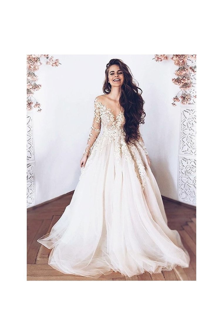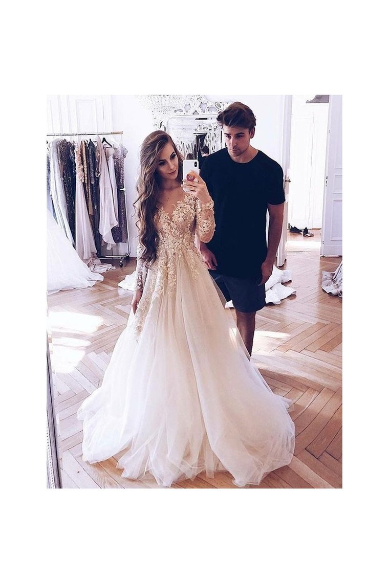 Round Neck Long Sleeves Lace Wedding Dresses Graduation Dresses