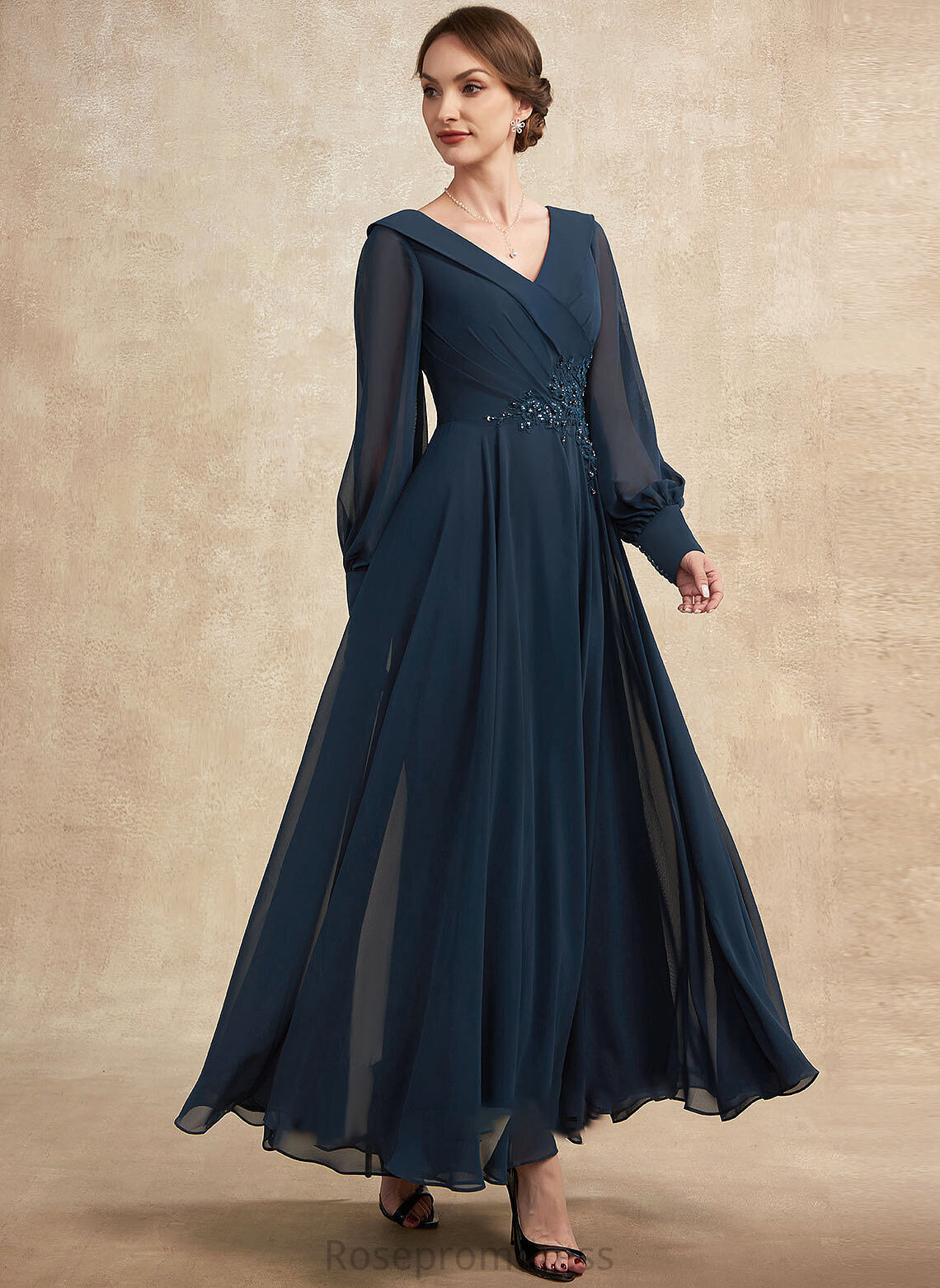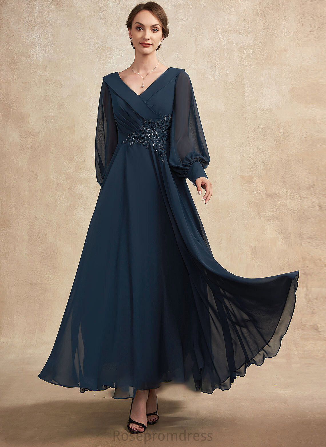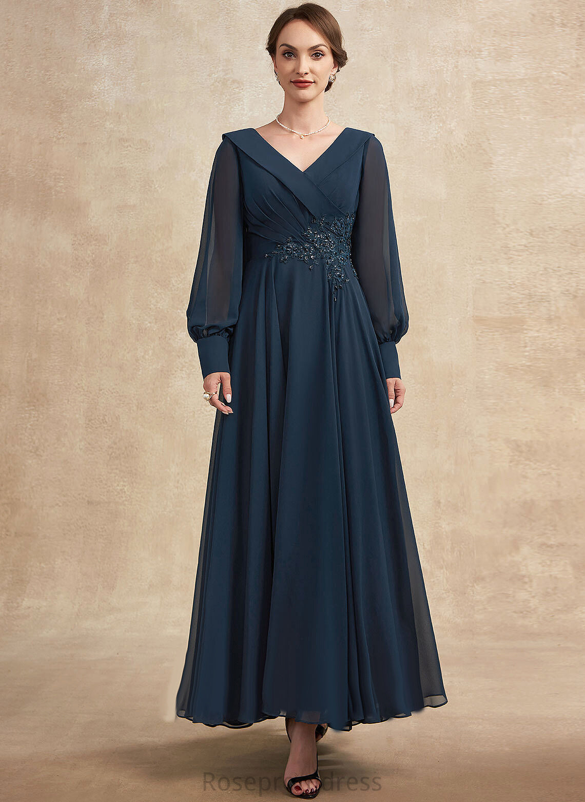 Ruffle A-Line Marlene Dress the Beading Sequins With Appliques Chiffon Mother of the Bride Dresses Ankle-Length Bride Lace V-neck of Mother