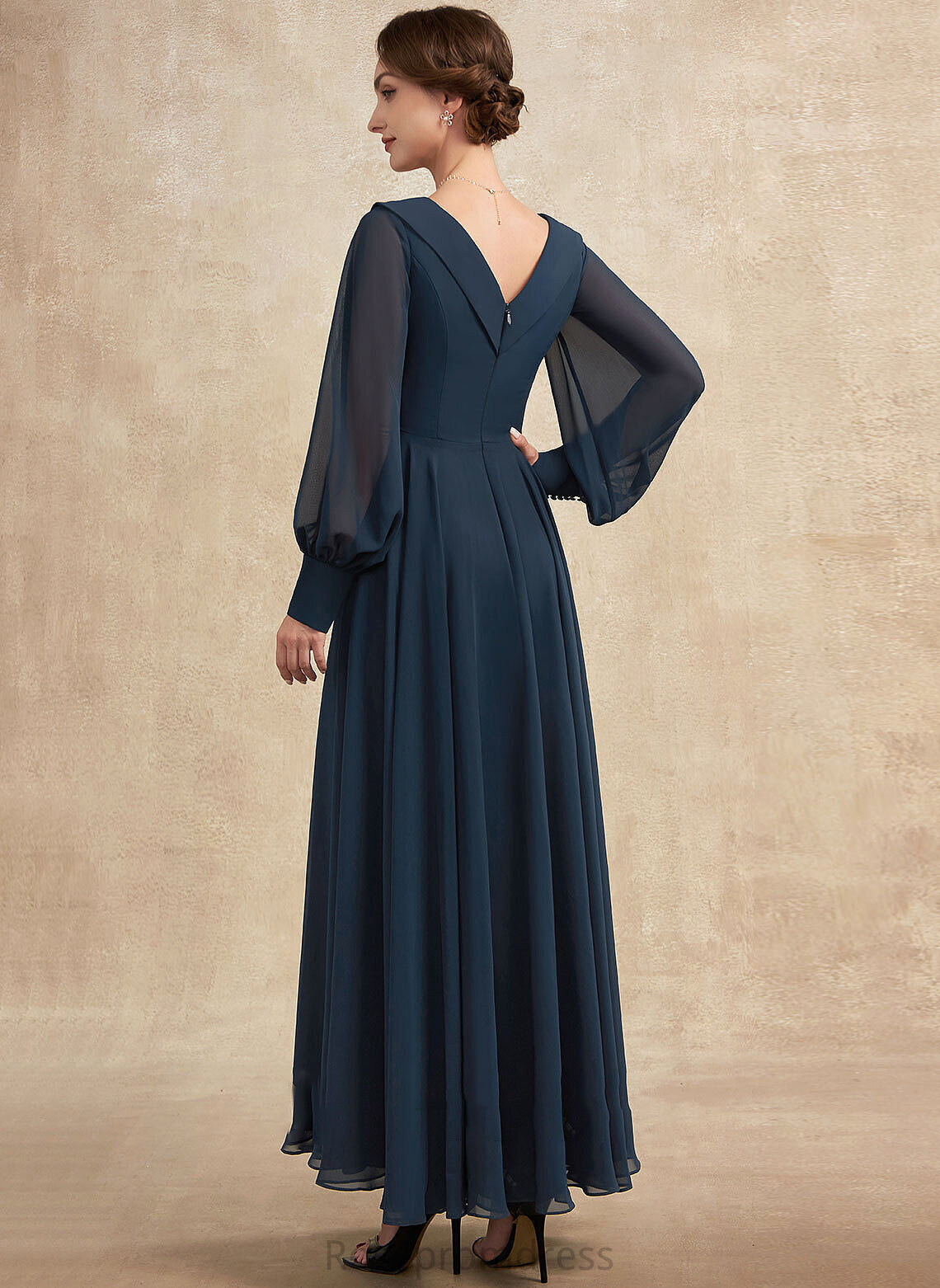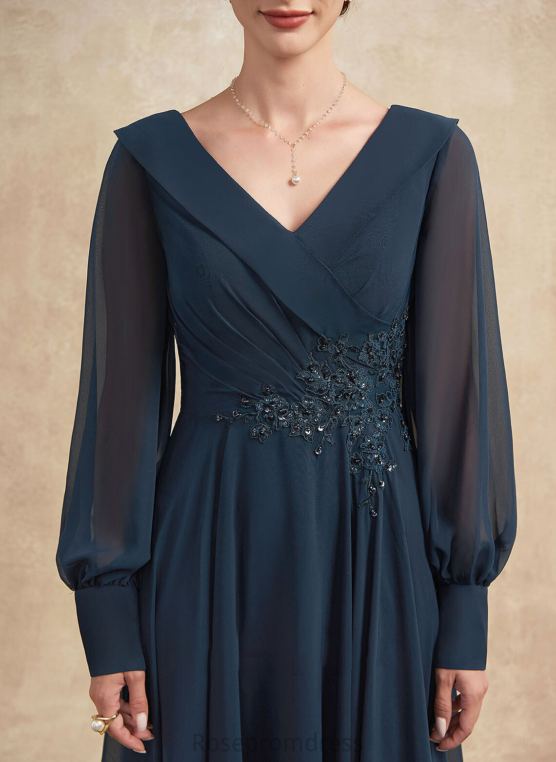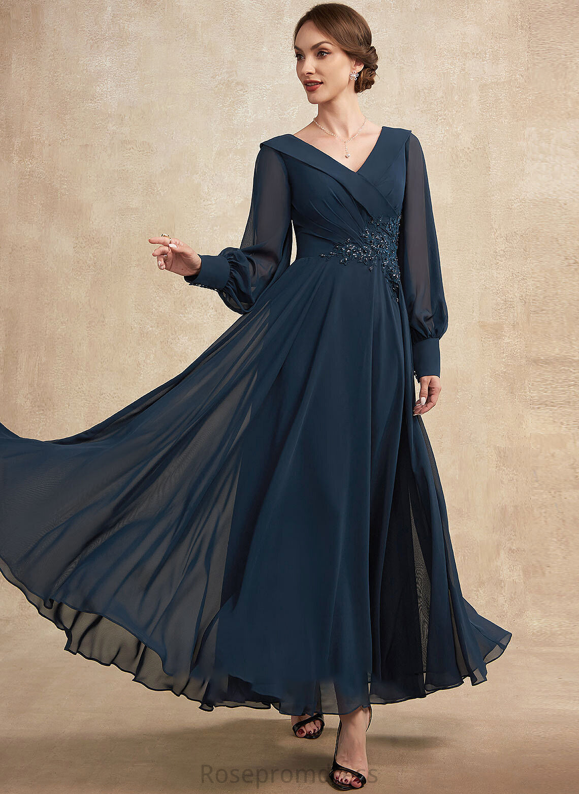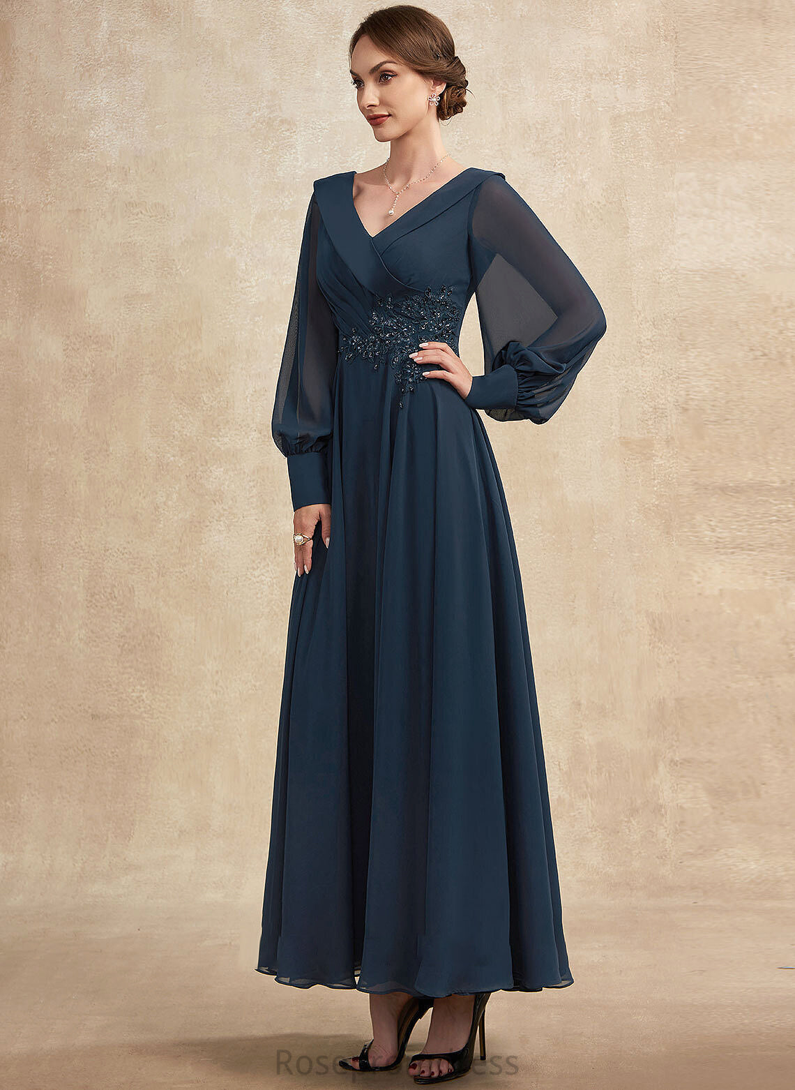Ruffle A-Line Marlene Dress the Beading Sequins With Appliques Chiffon Mother of the Bride Dresses Ankle-Length Bride Lace V-neck of Mother