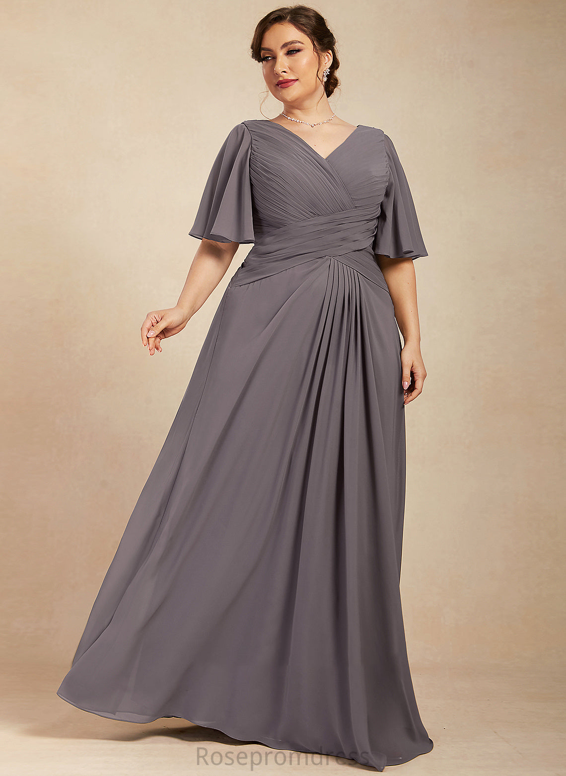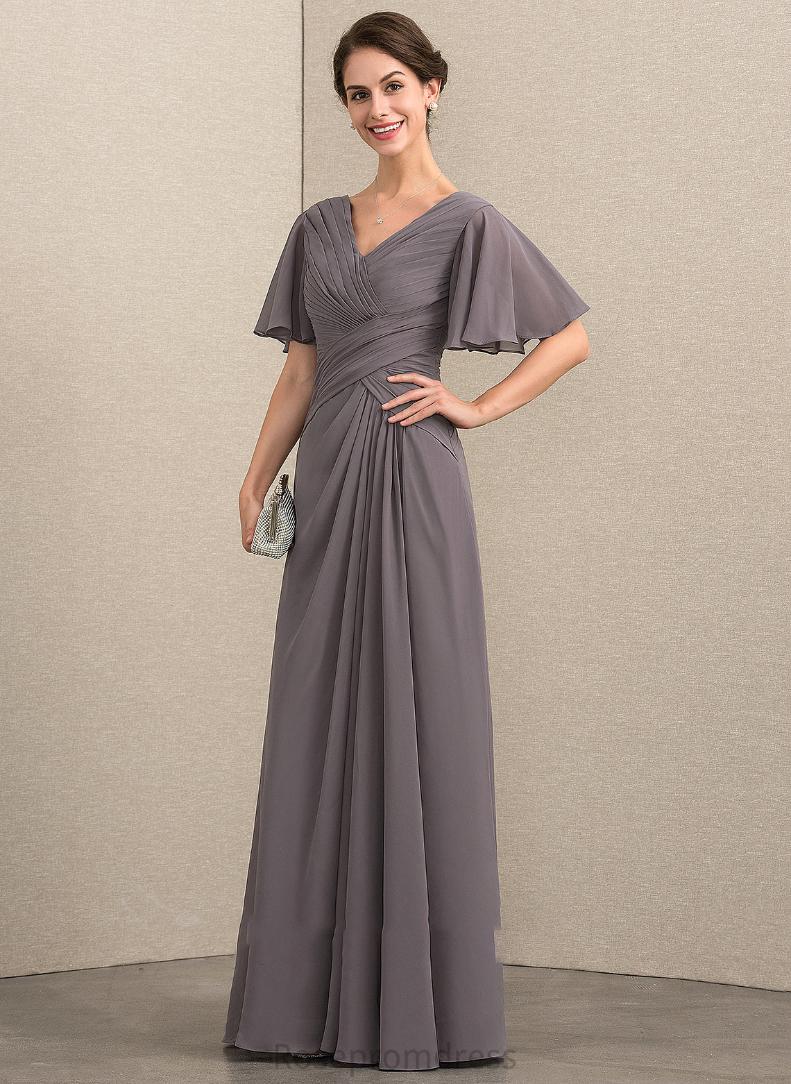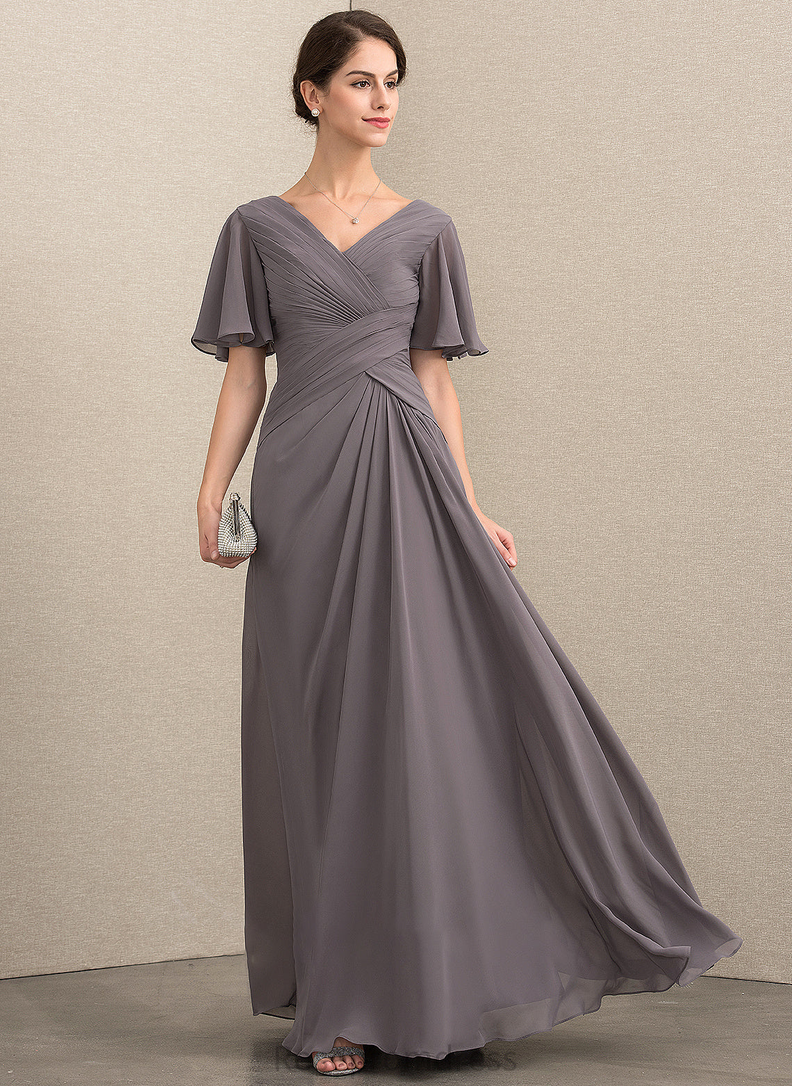 Ruffle Dress Floor-Length With Bride the of Mother Mother of the Bride Dresses Braelyn Chiffon V-neck A-Line