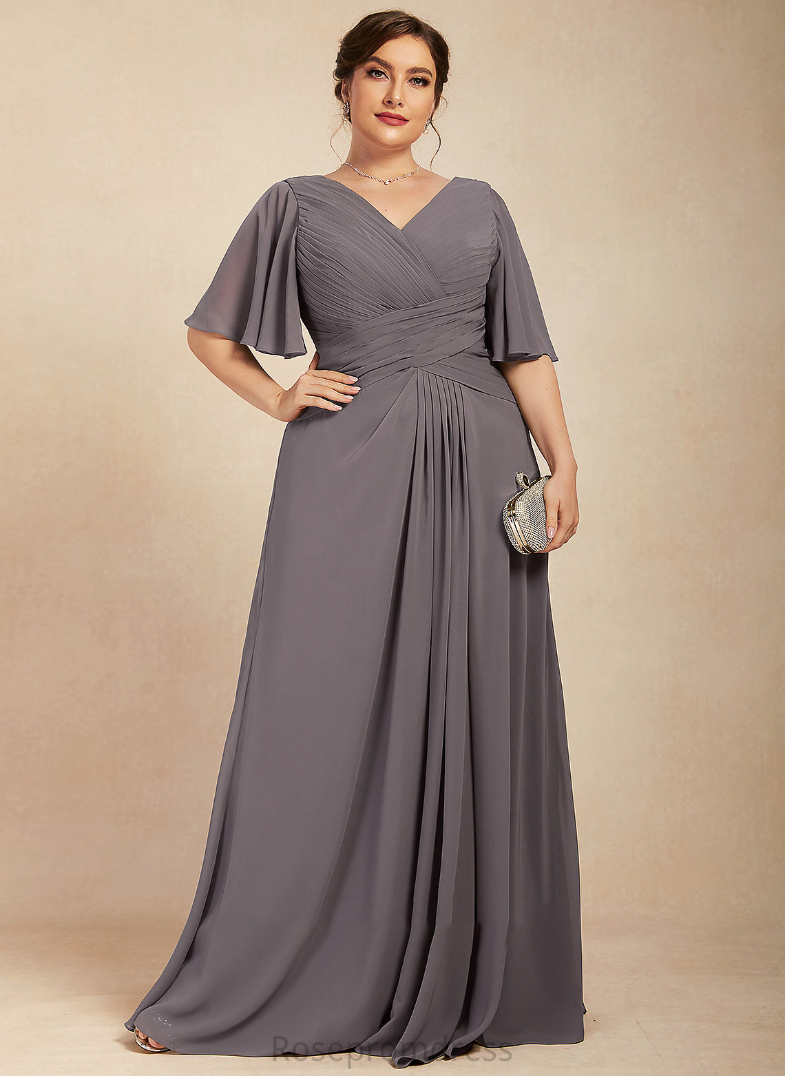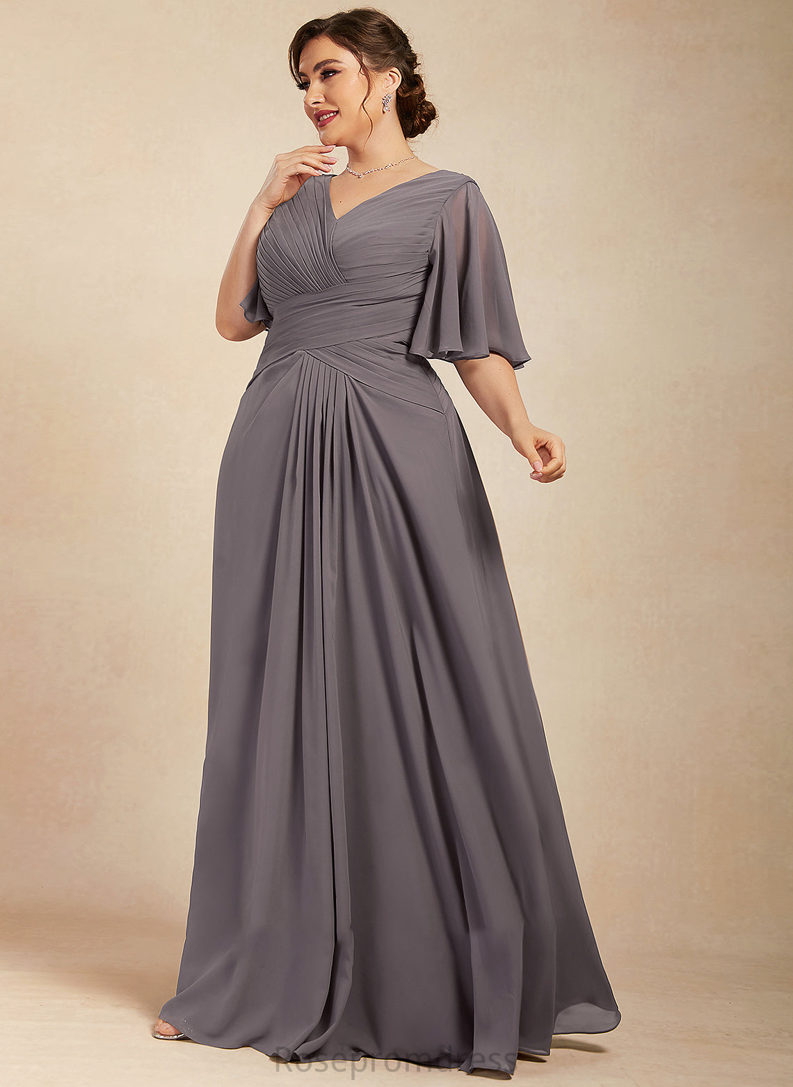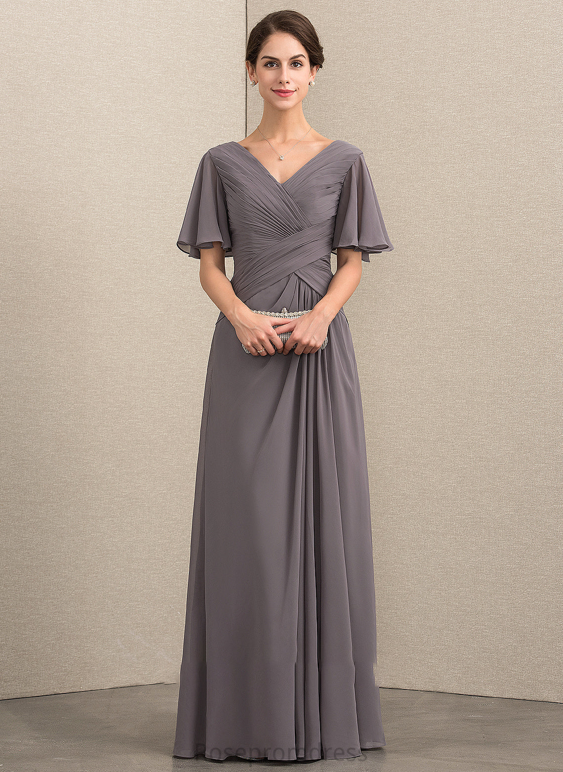 Ruffle Dress Floor-Length With Bride the of Mother Mother of the Bride Dresses Braelyn Chiffon V-neck A-Line