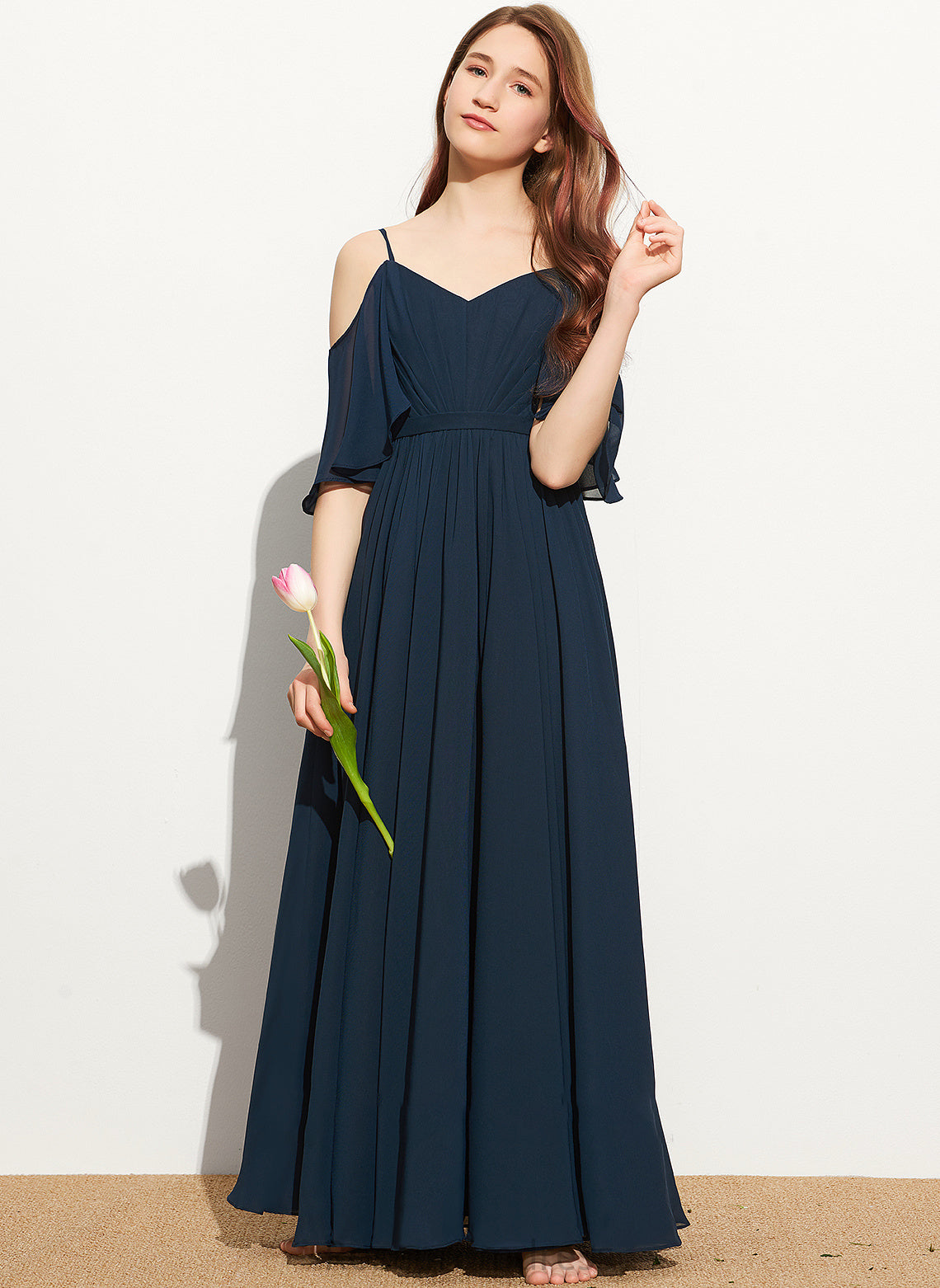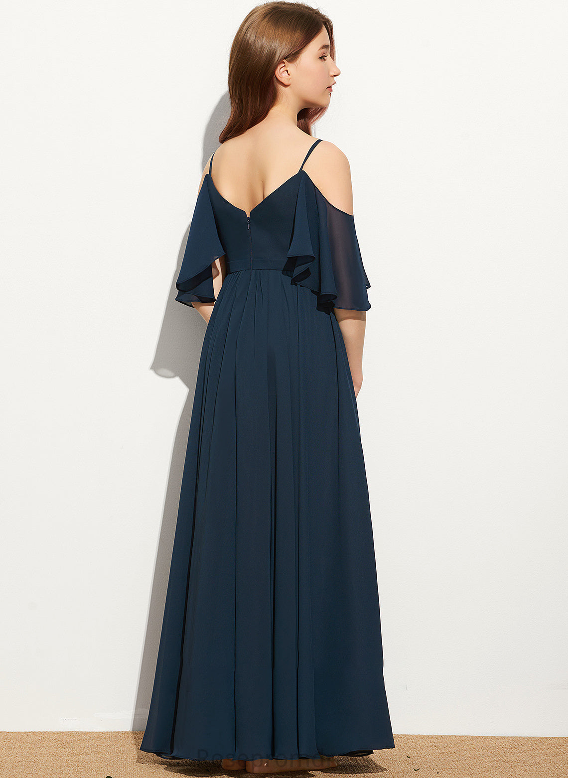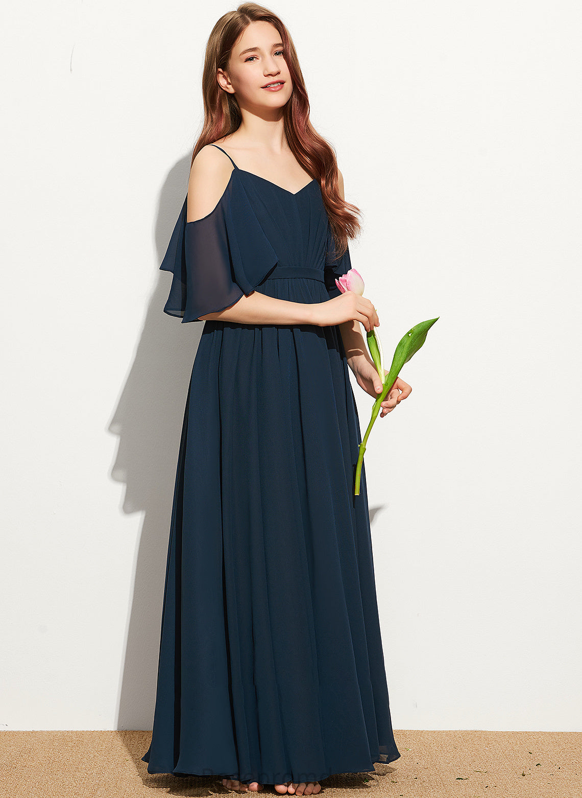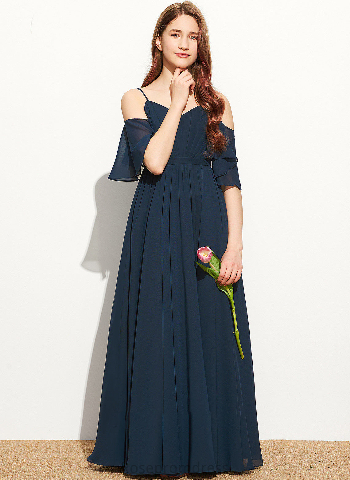 Ruffle Floor-Length Junior Bridesmaid Dresses A-Line Natalie Off-the-Shoulder With Chiffon