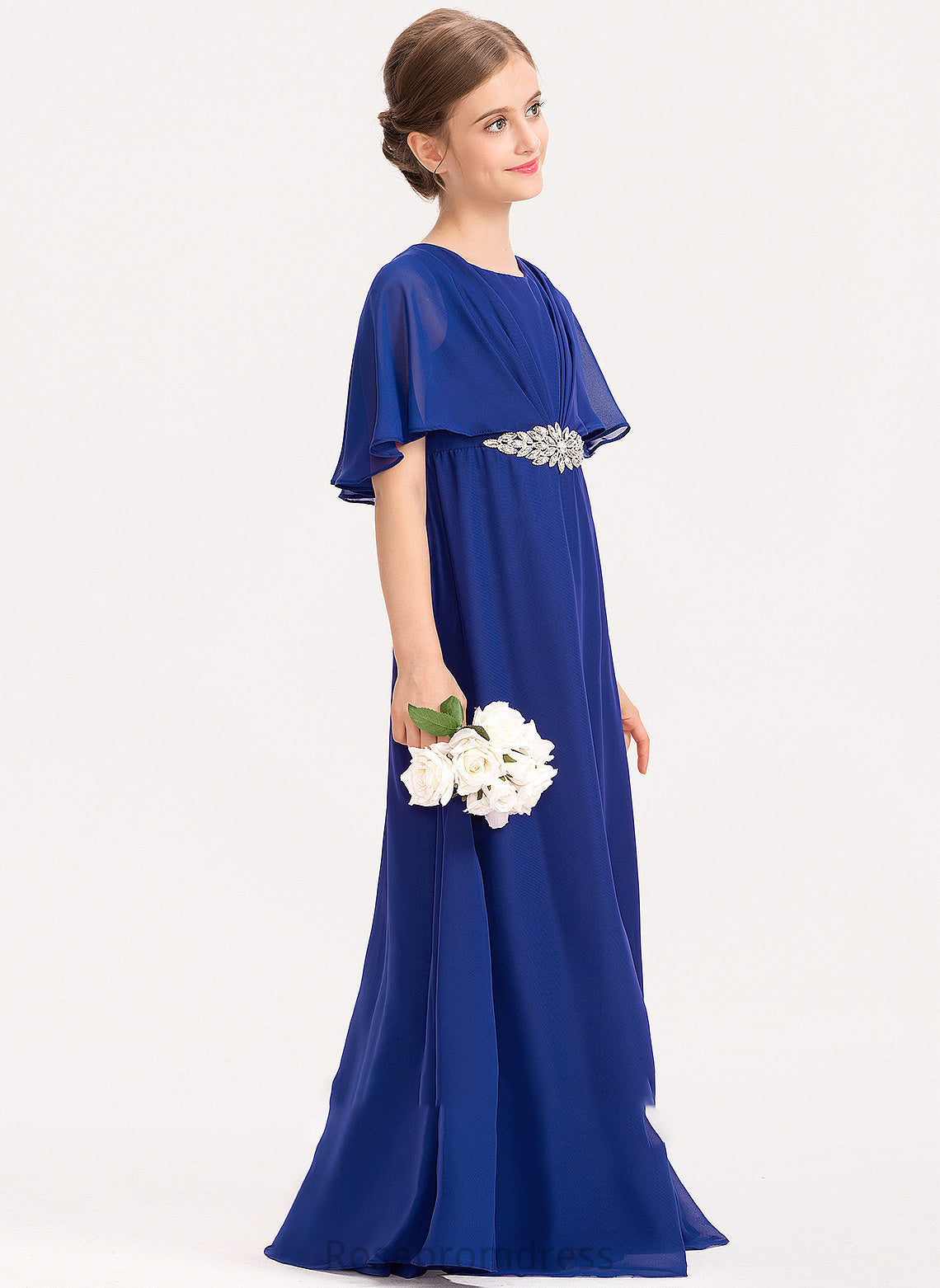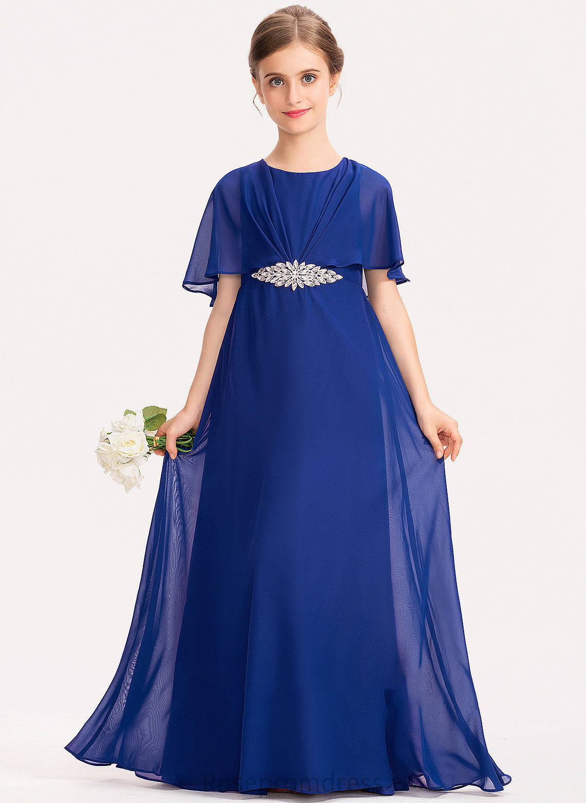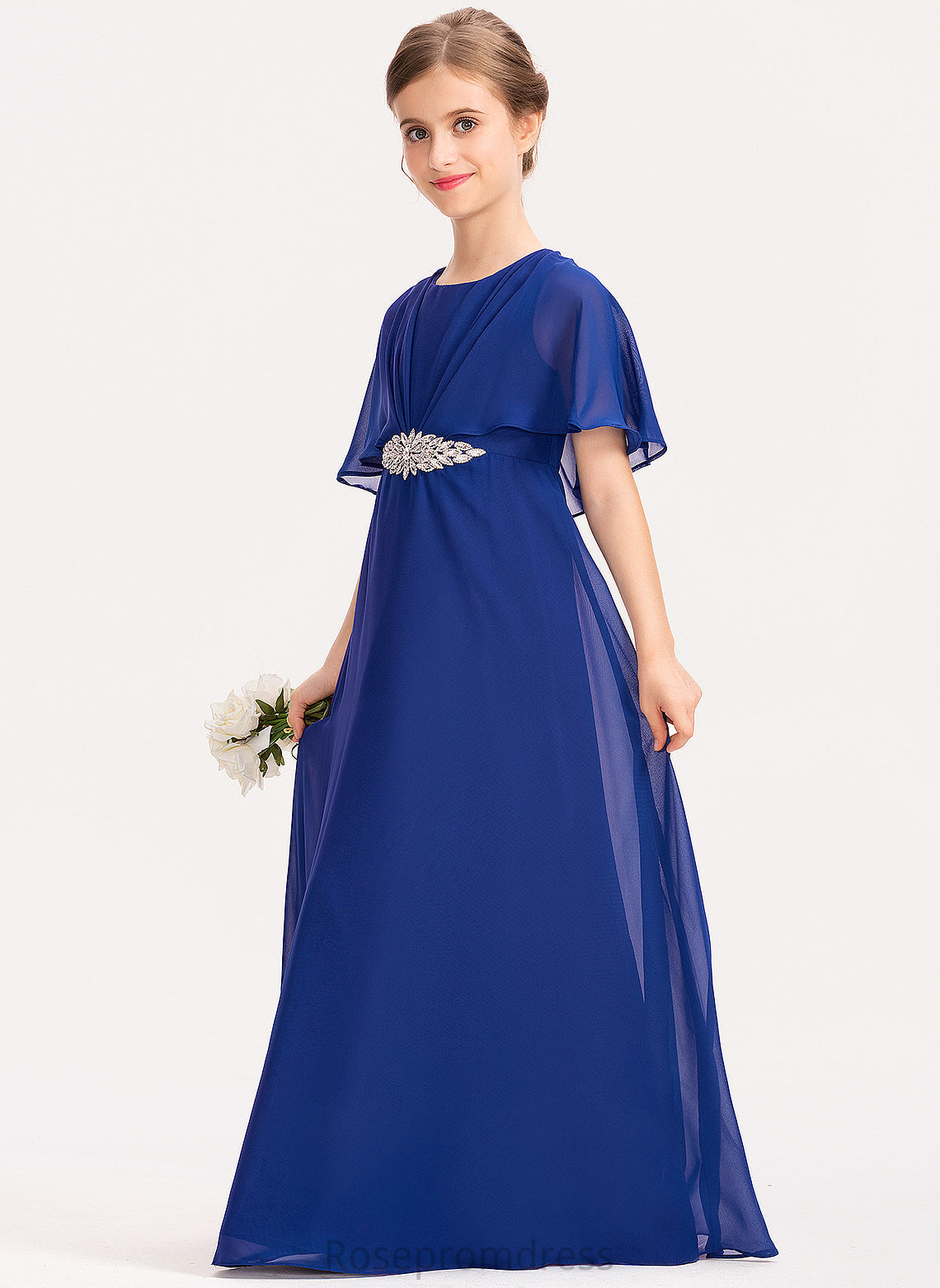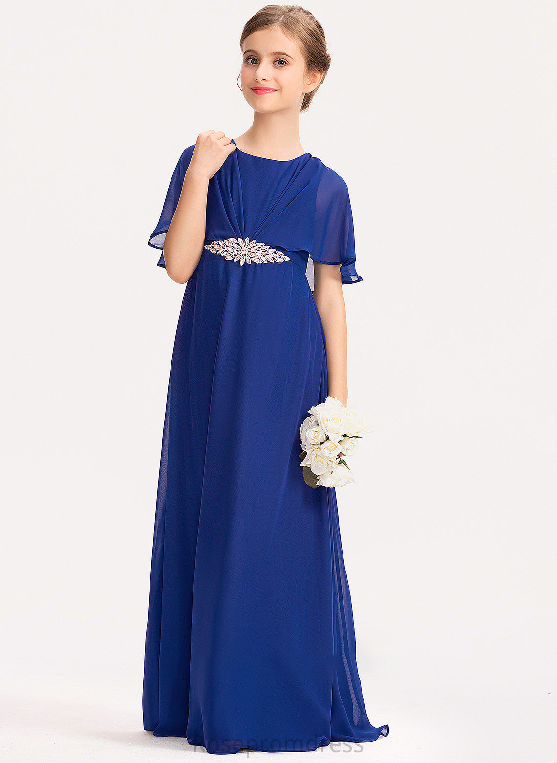 Ruffle Junior Bridesmaid Dresses Chiffon Beading Noemi Floor-Length Scoop With A-Line Neck